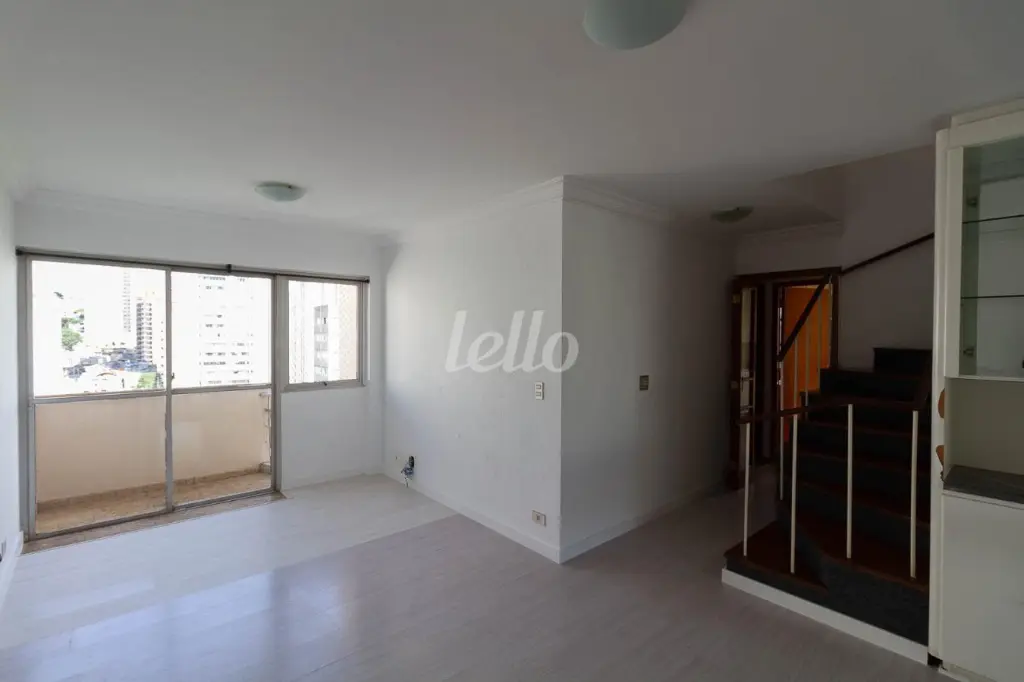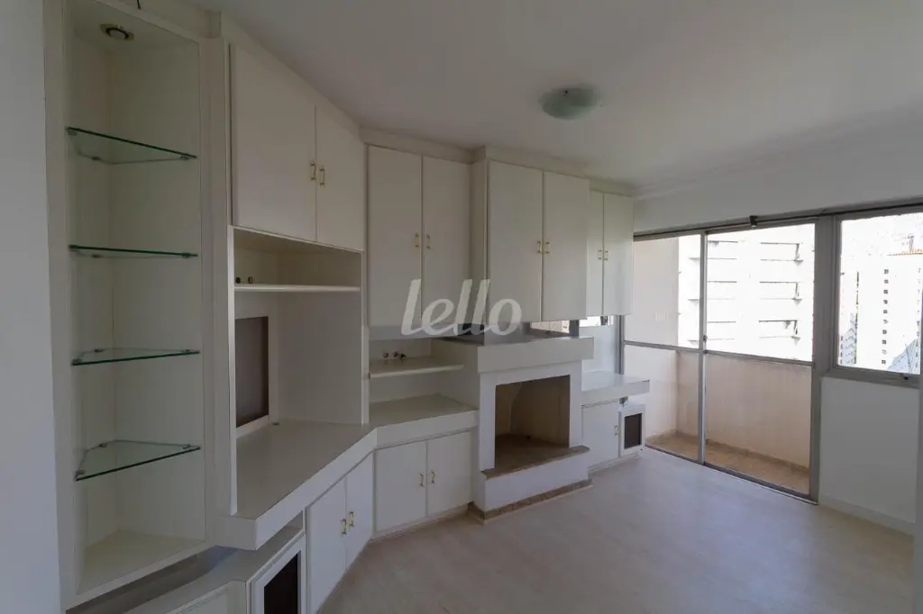 Apartamento para alugar em Santana. Sala com 2 ambientes com piso tábua corrida e sala com lareira e varanda,