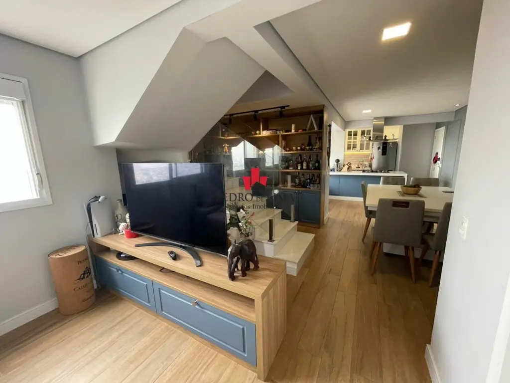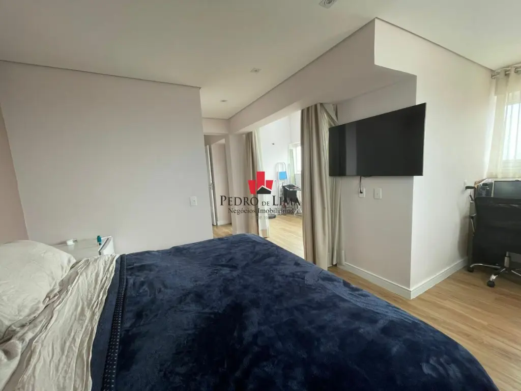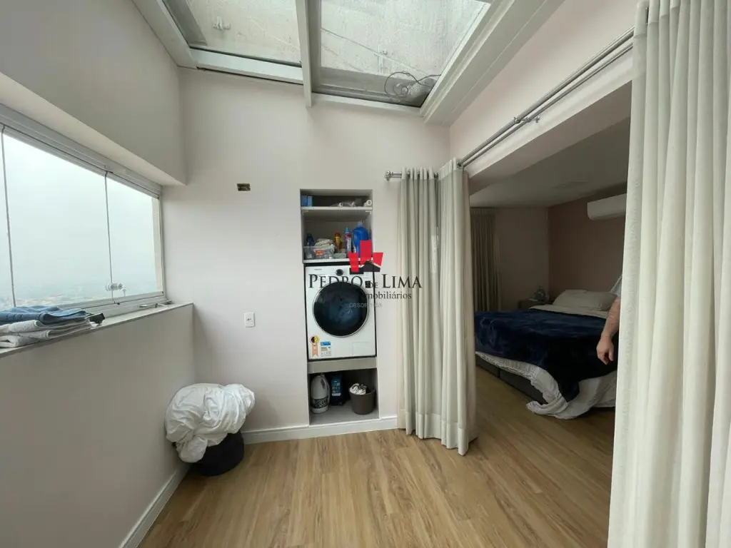 Cobertura duplex com 2 suítes sendo uma master com planejados cobertura retrátil motorizada, janelas em volta do quarto se abrem por inteiro, pisos nos quartos em vinilico.