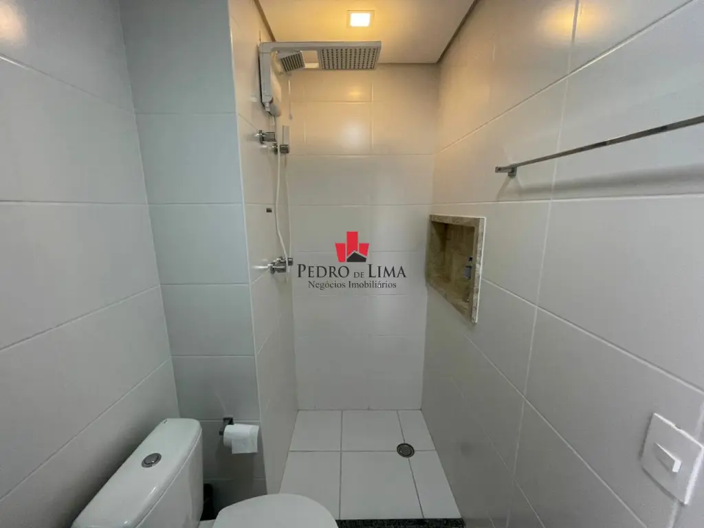 Sala ampla com 1 banheiro. Piso na parte inferior em porcelanato. Imóvel com acabamento de primeira linha com fechadura eletrônica.