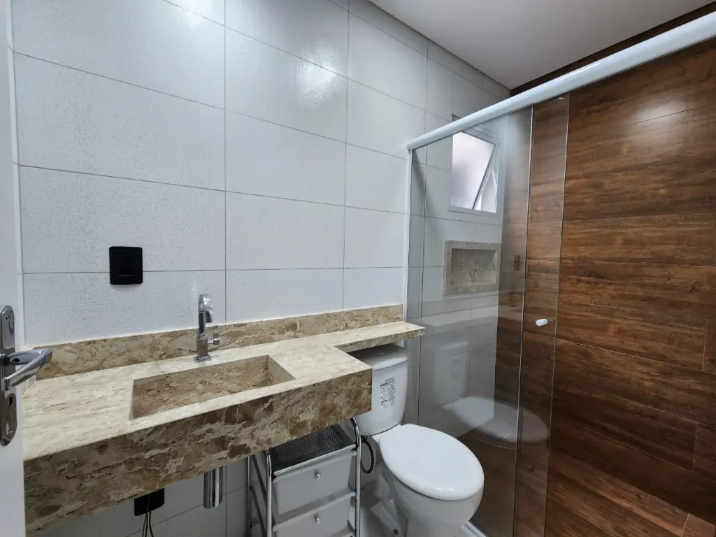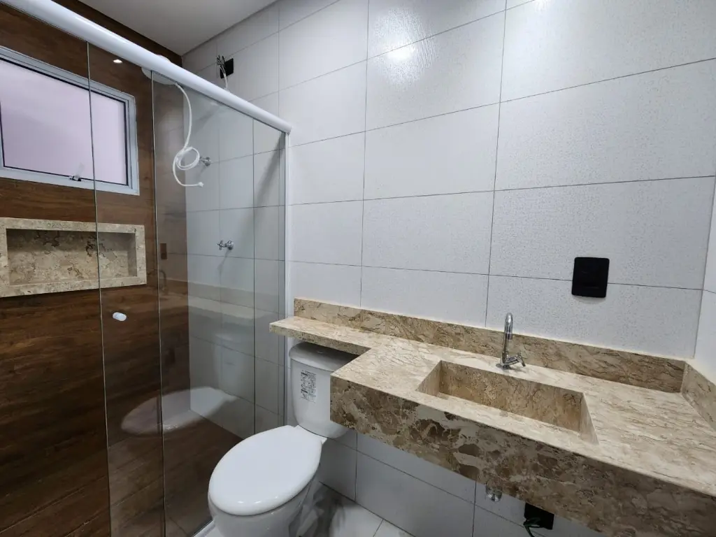 Fino acabamento com pia esculpida nos banheiros;