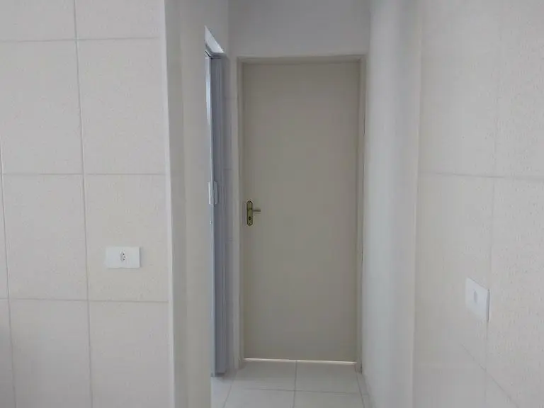 Imóvel em condomínio fechado com 1 dormitório, sala e cozinha conjugado, wc com Box de vidro e área de serviço.