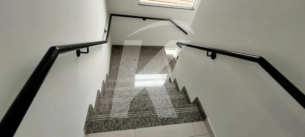 O prédio tem elevador e um terraço comunitário. Não tem vaga de garagem, seja para carro ou moto.