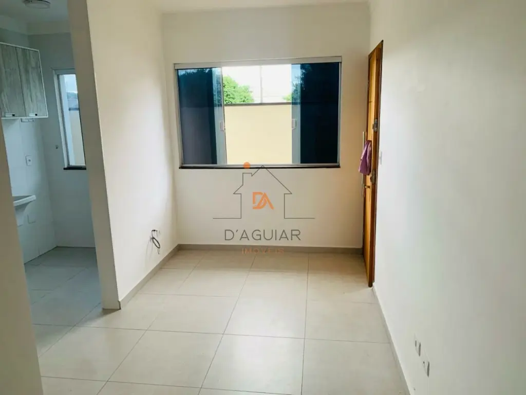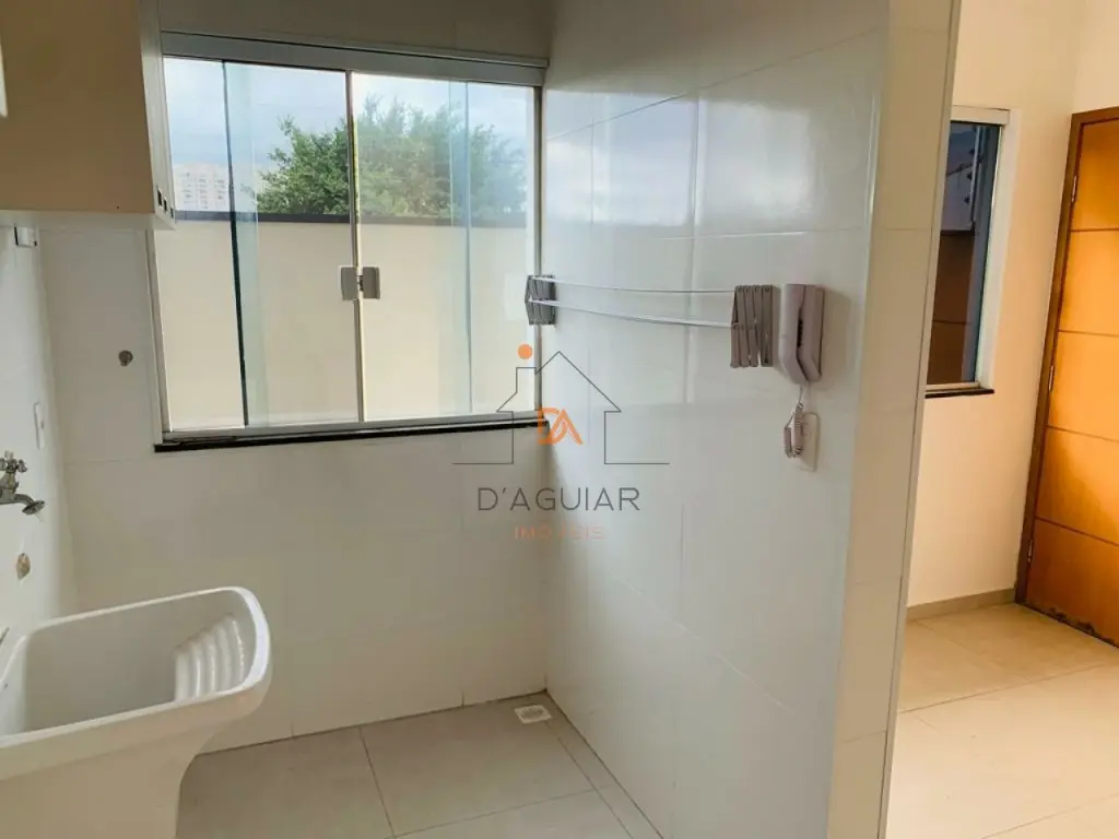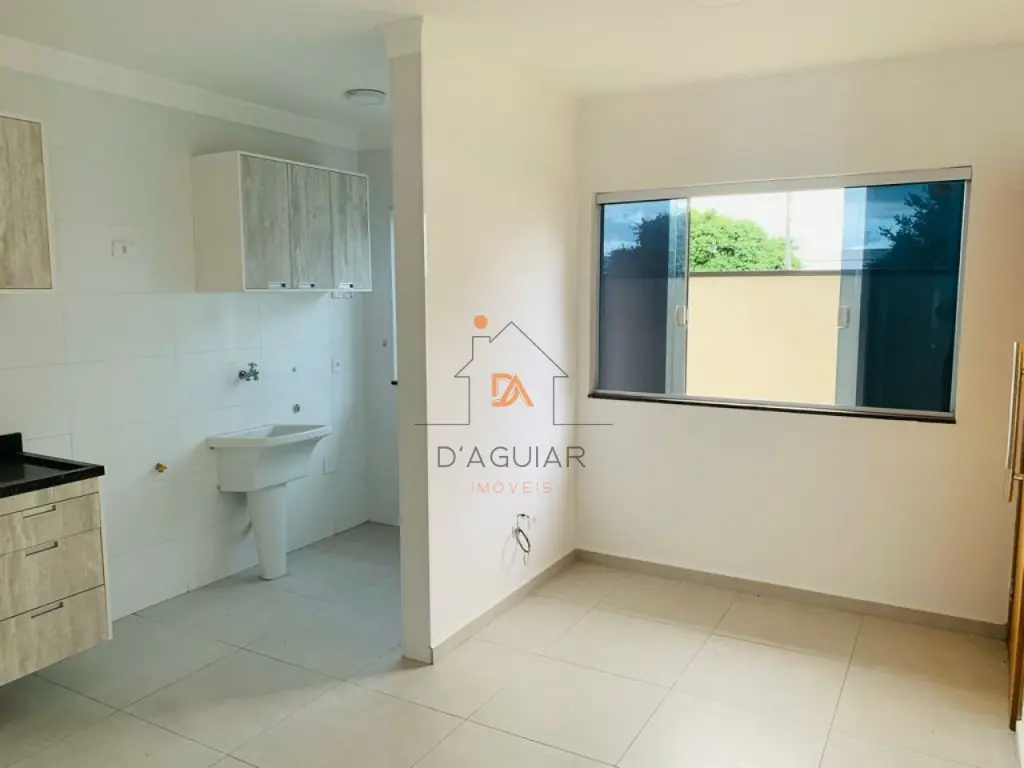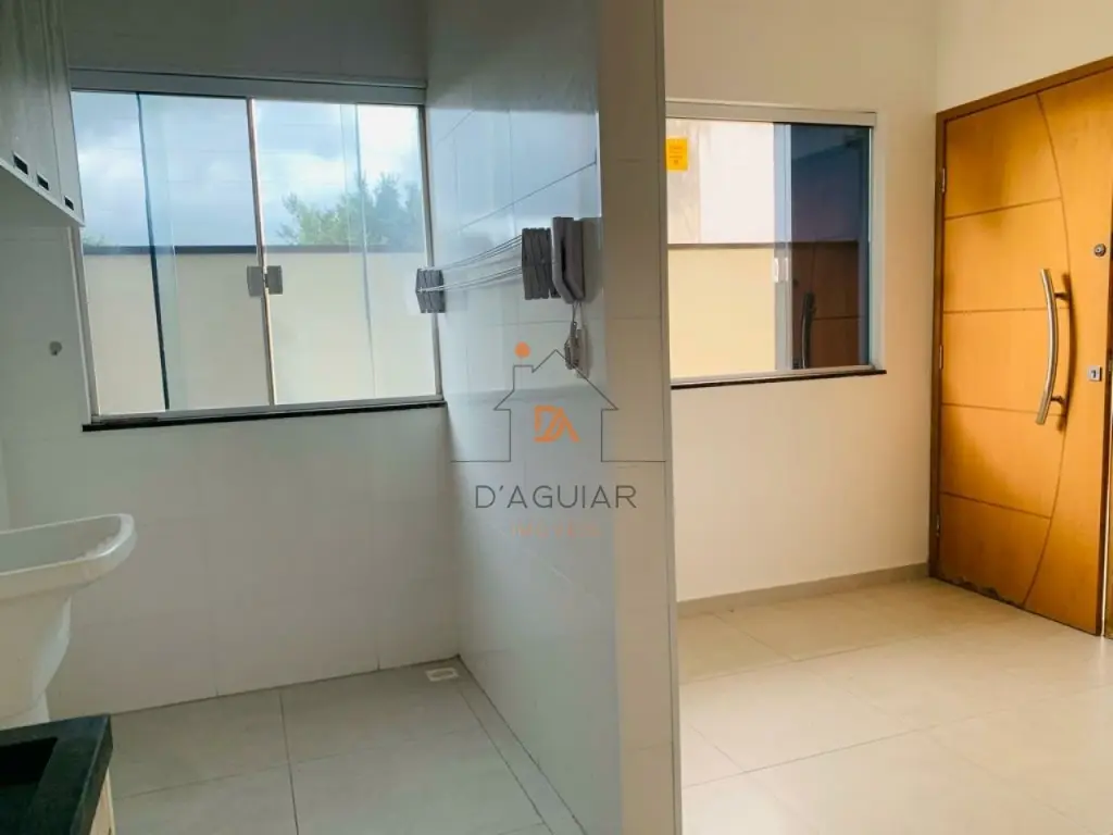 casa sendo a penúltima no corredor com fino acabamento em piso em porcelanato claro em cômodos compactos contendo um dormitório, sala de estar, cozinha com gabinete e armários planejados conjugada a área de serviço tendo tanquinho, varal dobradiço e vidros fume.