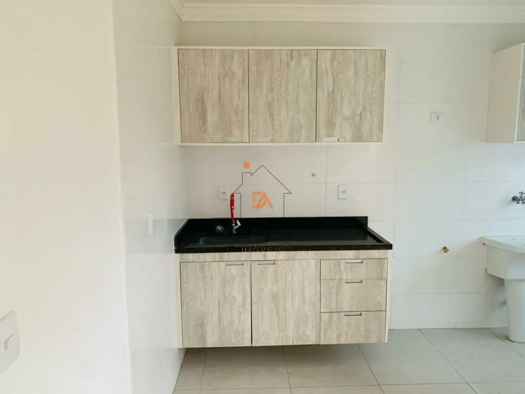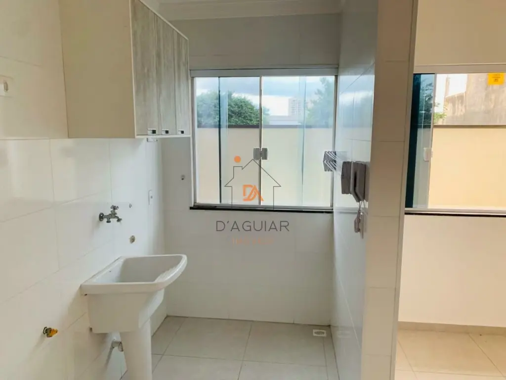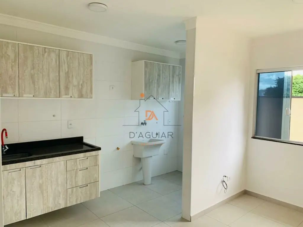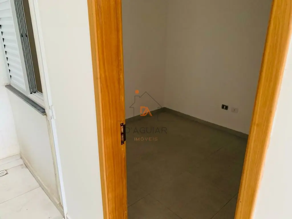 casa sendo a penúltima no corredor com fino acabamento em piso em porcelanato claro em cômodos compactos contendo um dormitório, sala de estar, cozinha com gabinete e armários planejados conjugada a área de serviço tendo tanquinho, varal dobradiço e vidros fume.