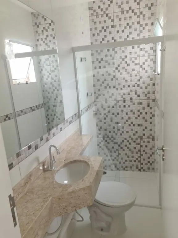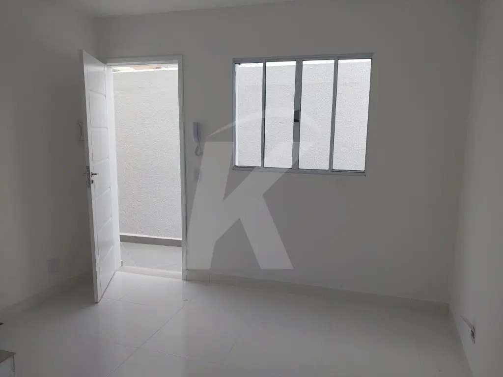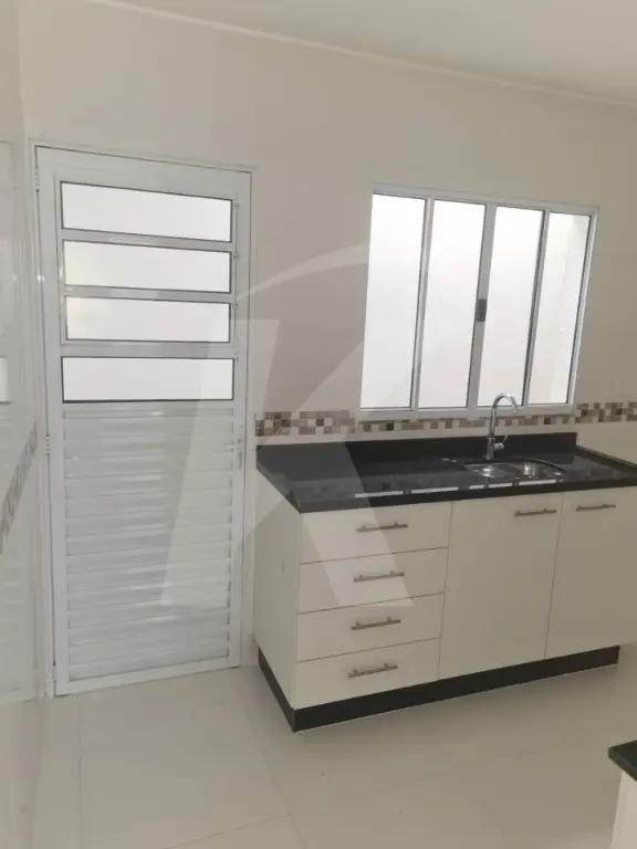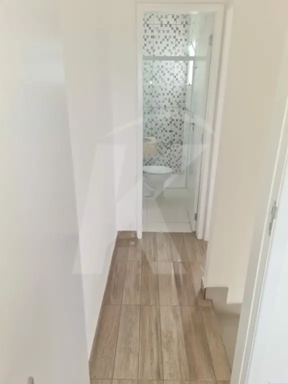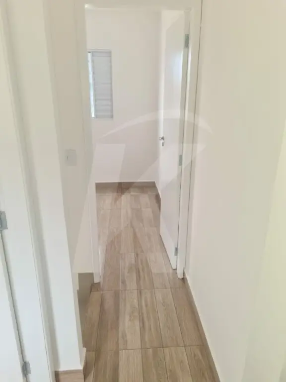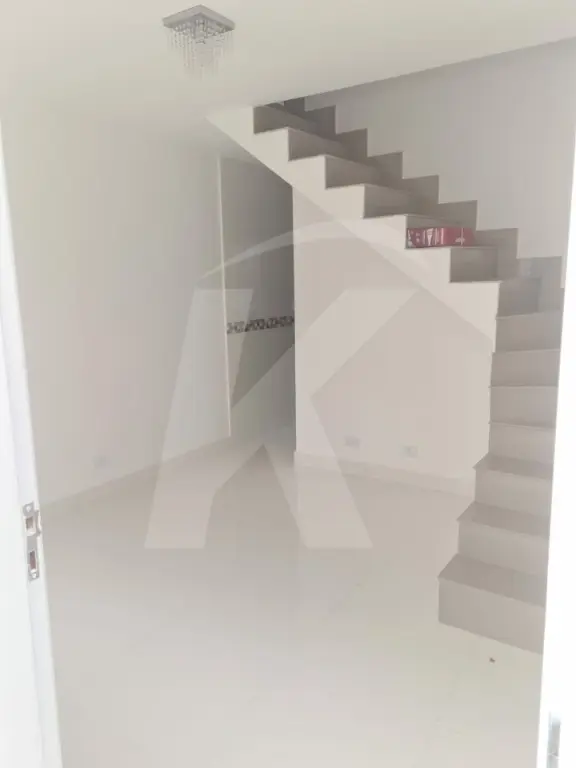 Sobrado novo em condomínio fechado com 2 dormitórios, sala, cozinha, banheiro e área de serviço.