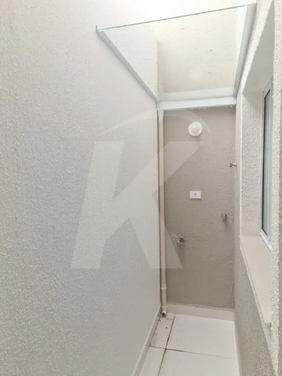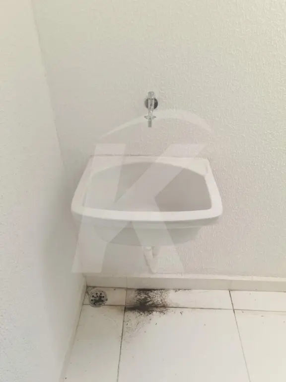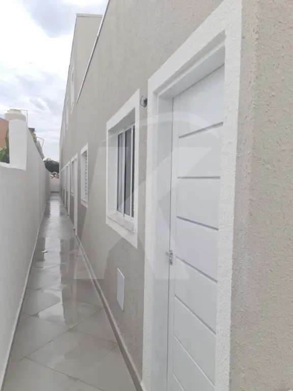 Sobrado novo em condomínio fechado com 2 dormitórios, sala, cozinha, banheiro e área de serviço.