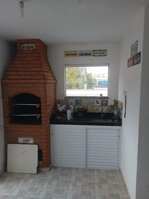Área social com churrasqueira e pia.