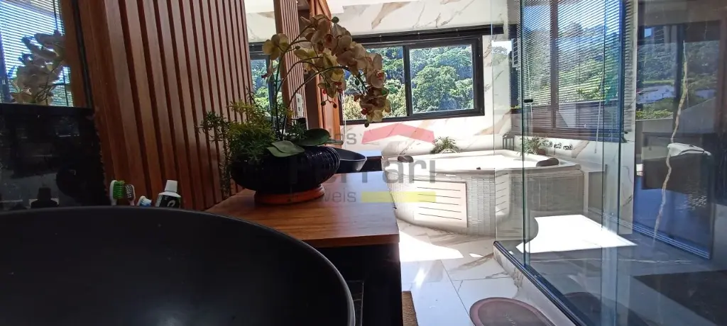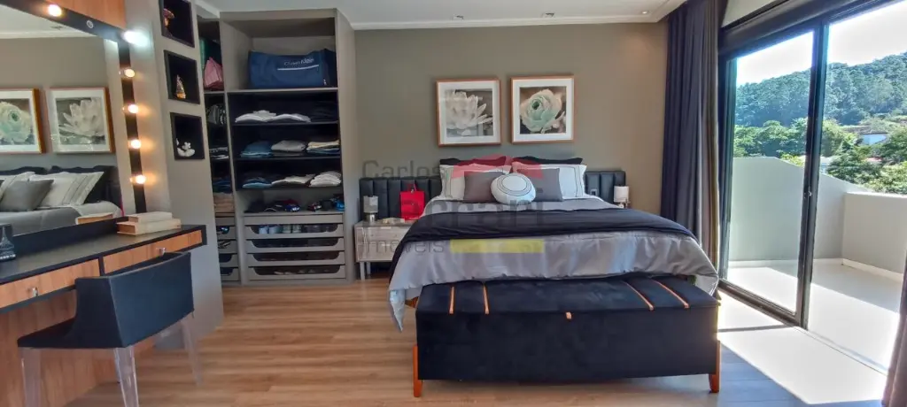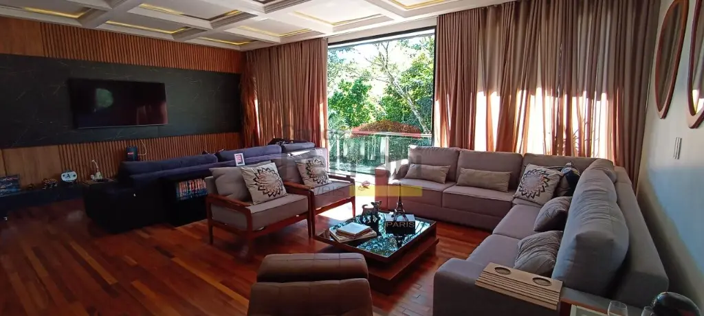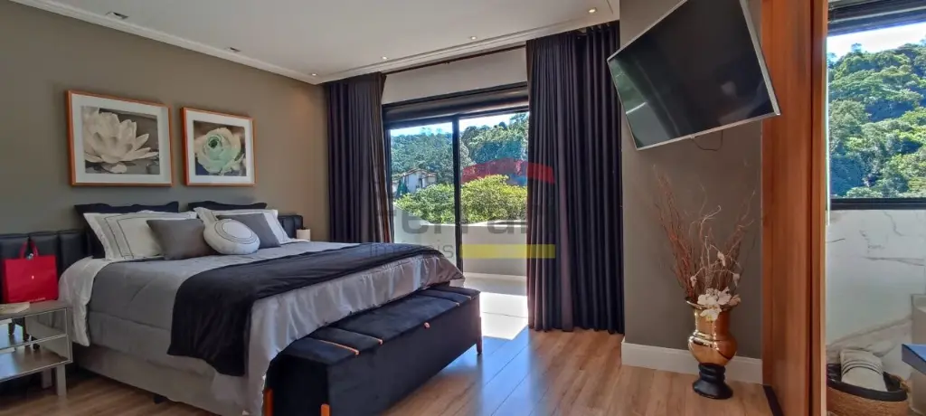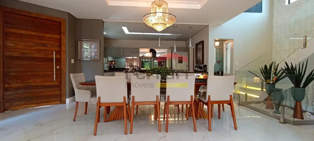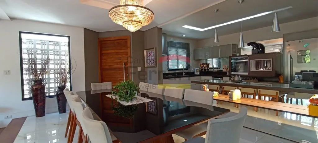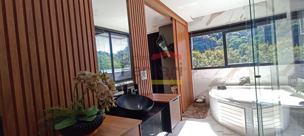Diferenciais incluem espaço gourmet com sala de vídeo, piscina com prainha e raia coberta, deck com área kids, ponte pênsil e escorregador, além de ambiente preparado para adega ou sala de jogos. Conta ainda com preparação para elevador e vista definitiva para área de preservação.