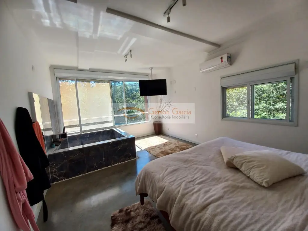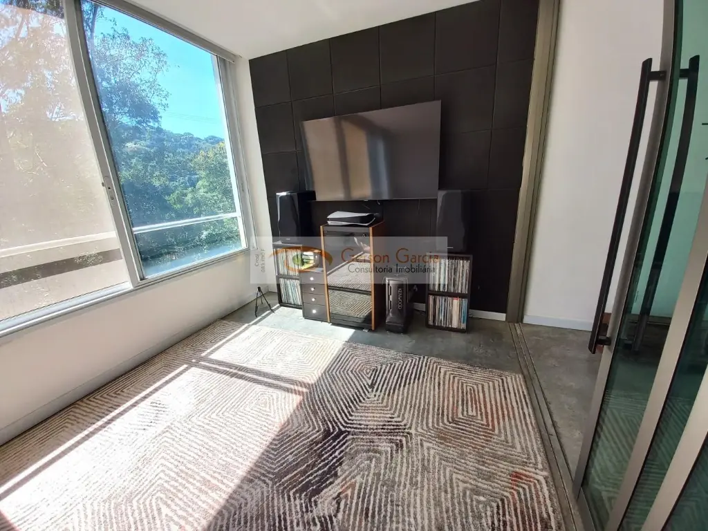 2. Nível Intermediário (Garagem e Funcional)Garagem: Espaço vasto com piso de cimento queimado. Comporta de 5 (com folga) a 8 carros (limite máximo). Possui linda mesa de bilhar.Acomodações neste nível da casa: Duas suítes com armários WC completo .TrabalhoLazer: Escritório e um estúdio de gravação e ensaio ( som ) grande com dois ambientes, portas pesadas de ferro e isolamento acústico, que, ao gosto dos novos proprietários pode ser reutilizado como um cinema, uma vez que já possui tratamento acústico e portas acústicas.Serviços: Cozinha completa (com fogão e geladeira), área de serviço e uma sacada enorme com vista para o fundo do quintal.Lazer Externo: Spa fechado e funcional, quintal lateral com espaço para horta.