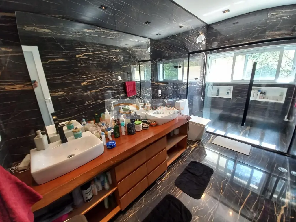 3. Nível Inferior (Lazer e Pet)Bem-estar: Sauna seca, lavabo e academia completa e espaçosa. Adega refrigerada ( visível pelo andar de cima ), ampla, funcional.Área Gourmet: Cozinha de apoio integrada à área da piscina. Piscina: Compacta, familiar, aquecida, com raia, em ambiente fechado.Academia: Compacta, montadinha, cujos equipamentos acompanharão a venda.Área Externa: Amplo quintal gramado em dois níveis (platôs). A parte traseira é cercada, possui canil e é ideal para cães de grande porte (área estimada entre 150m² a 170m²).Diferenciais Técnicos e AcabamentosMaterial: Uso extensivo de aço Corteen (portas), material nobre resistente à corrosão.Tecnologia: Sistema de aspiração central (vácuo) com pontos por toda a casa, ar-condicionado tipo Split em diversos pontos, persianas, varal e janelas de correr todos elétricos e funcionais. Esquadrias: Janelas de alumínio da marca Udinese, com acionamento elétrico via controle remoto.Estilo: Descrita como uma casa tecnológica, moderna e com acabamentos de luxo.Construção ROBUSTA, sem trincas ou vícios construtivos.
