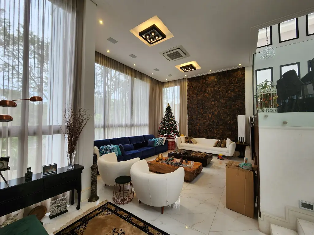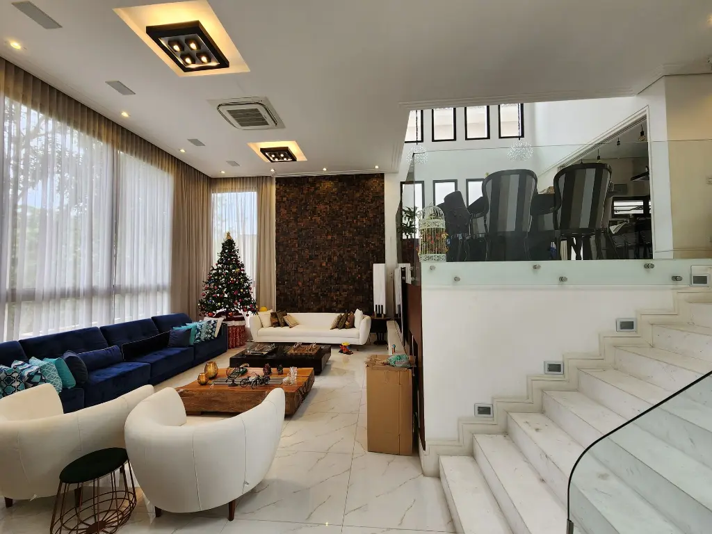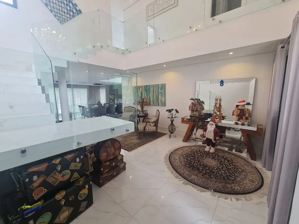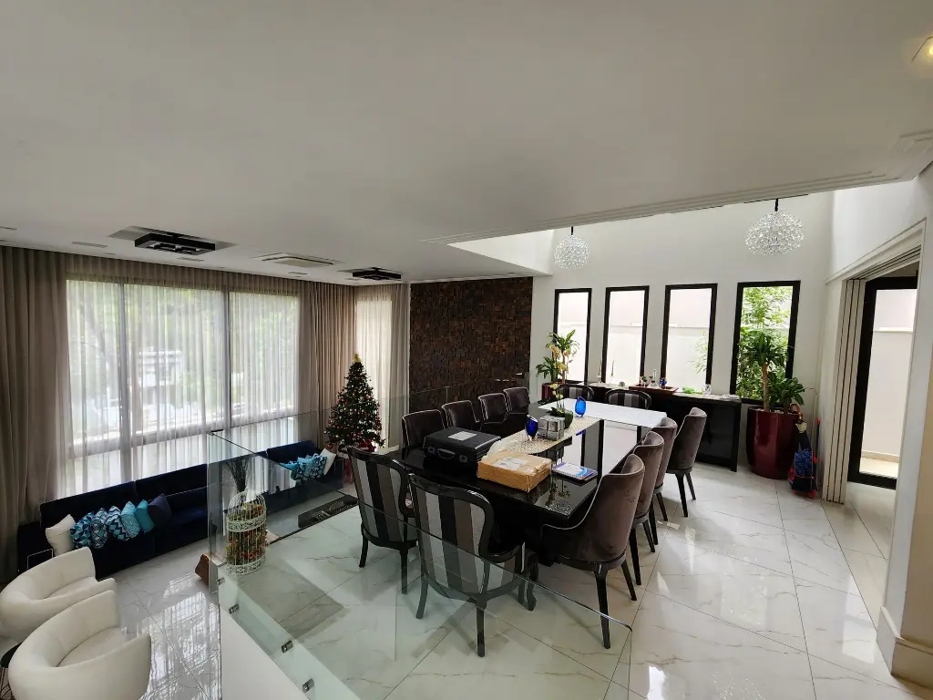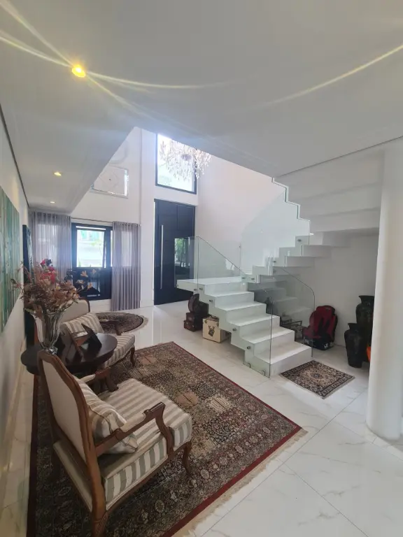 Imóvel pronto para morar com imponente projeto de arquitetura e design inovador que conta com um primoroso living com pé-direito duplo, ambientes com pisos e revestimentos em porcelanato, suítes com piso em madeira, teto rebaixado, iluminação em Led e Lustres, ar-condicionado central, ambientes com fechamento em vidro que proporciona iluminação natural, repleto em armários planejados, tudo muito bem decorado nos mínimos detalhes.
