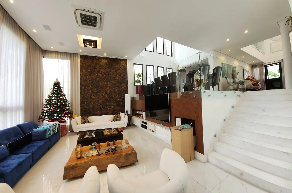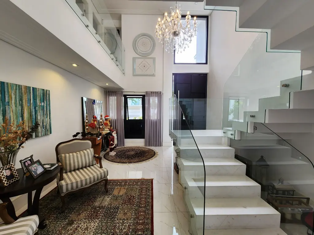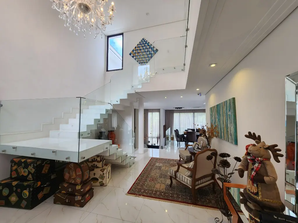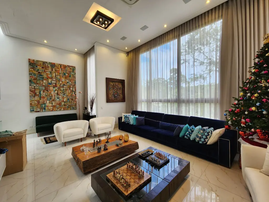 Imóvel pronto para morar com imponente projeto de arquitetura e design inovador que conta com um primoroso living com pé-direito duplo, ambientes com pisos e revestimentos em porcelanato, suítes com piso em madeira, teto rebaixado, iluminação em Led e Lustres, ar-condicionado central, ambientes com fechamento em vidro que proporciona iluminação natural, repleto em armários planejados, tudo muito bem decorado nos mínimos detalhes.