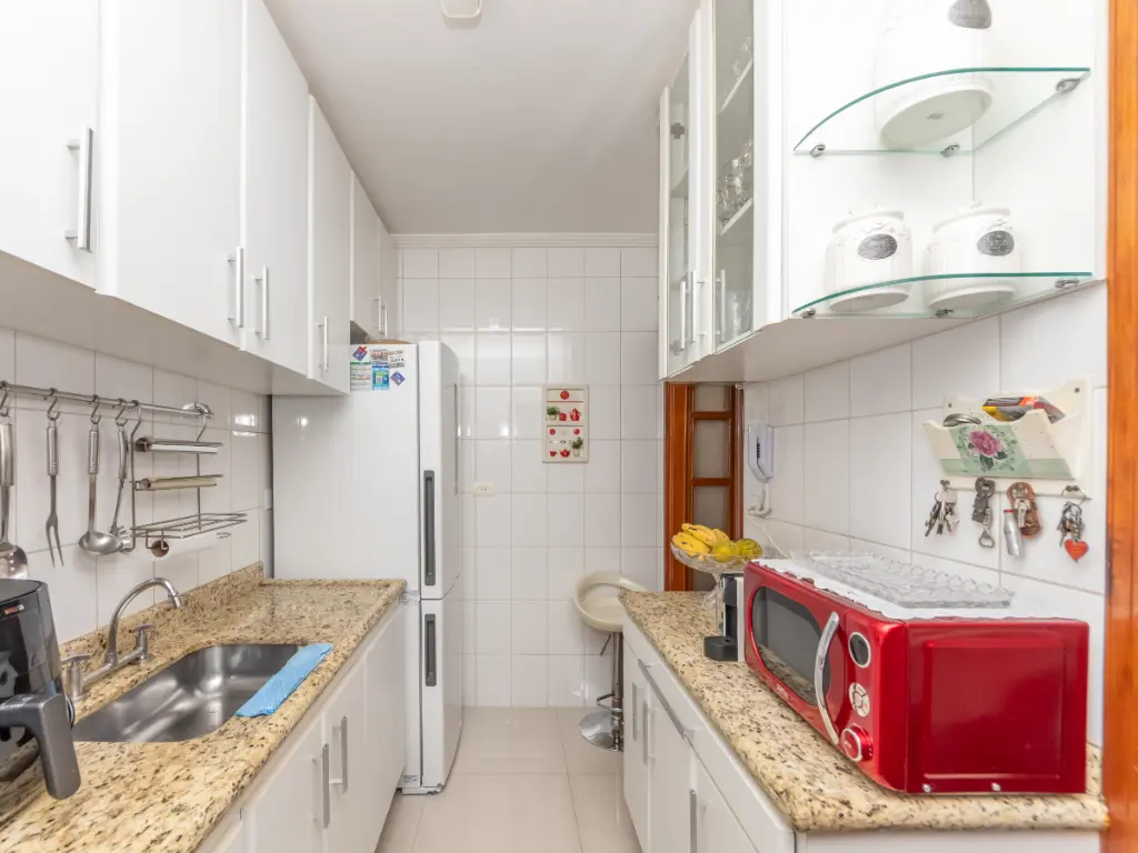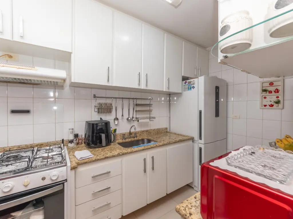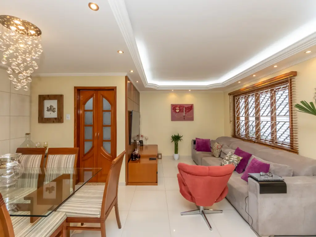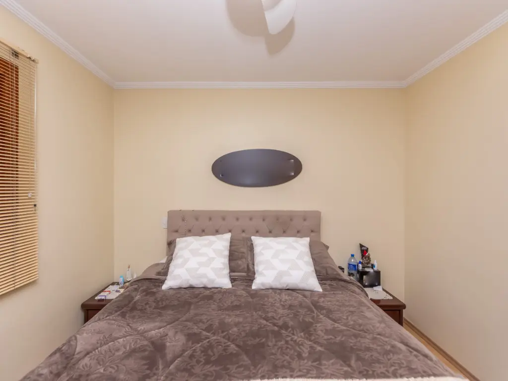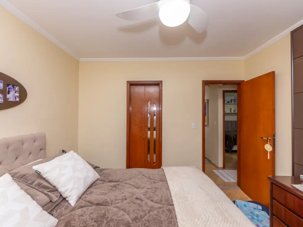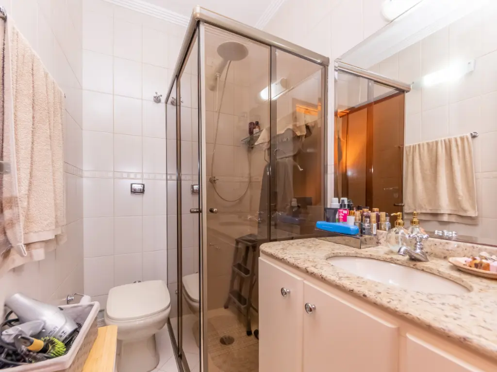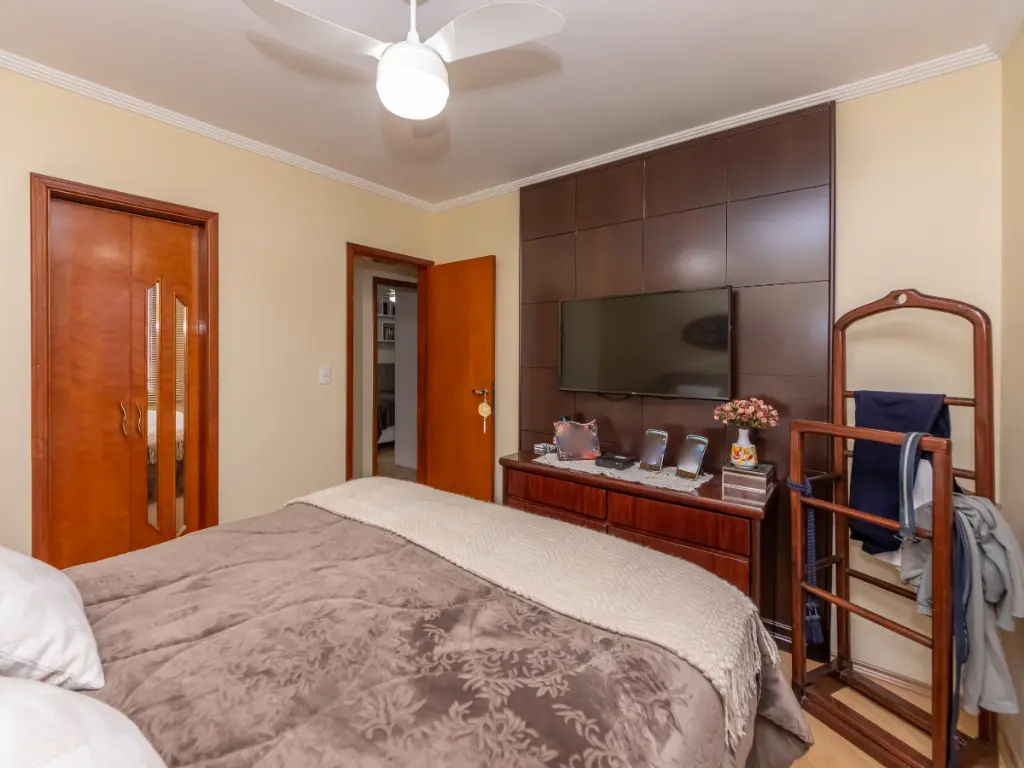 Na área íntima, o imóvel conta com 3 dormitórios, sendo 1 suíte, todos bem ventilados e com ótima iluminação natural. O banheiro social possui ventilação natural e acabamento de qualidade.