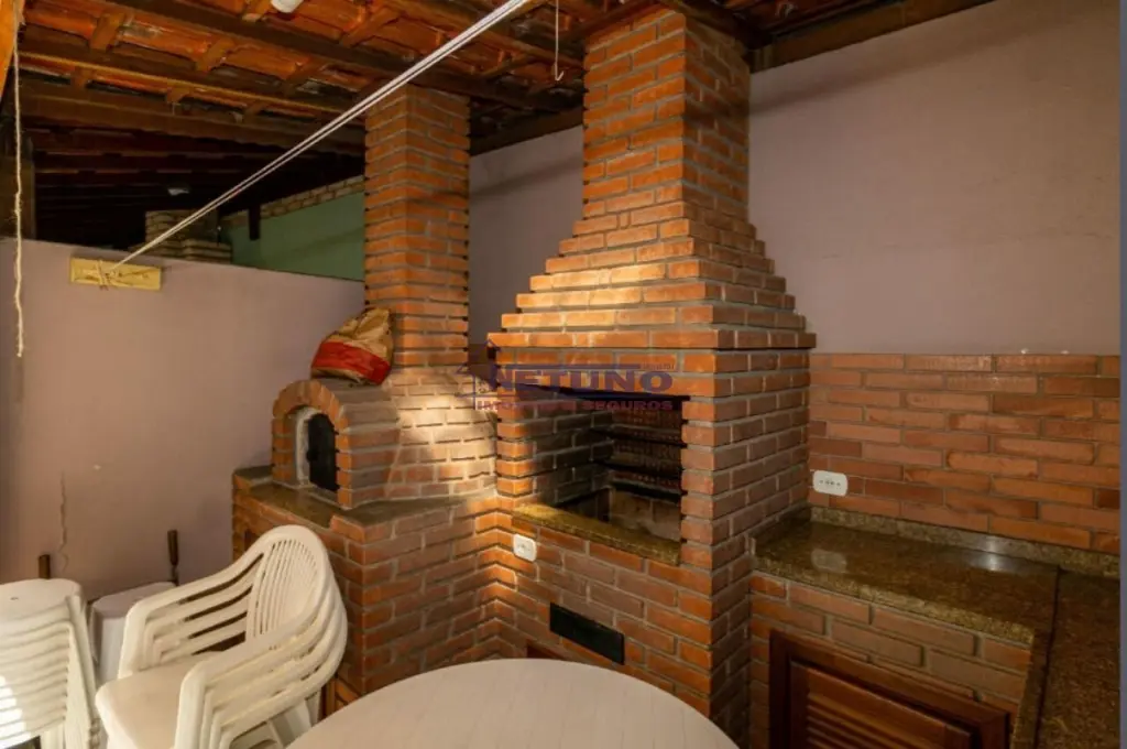 área gourmet com forno de pizza, churrasqueira e armários,