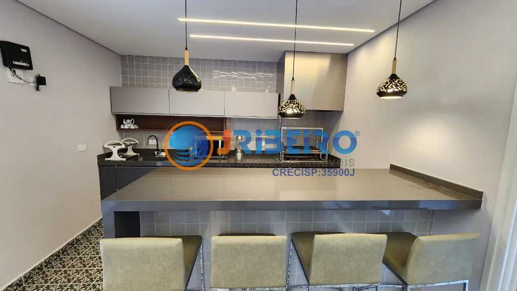 Cozinha americana e copa integradas, oferecendo modernidade e praticidade