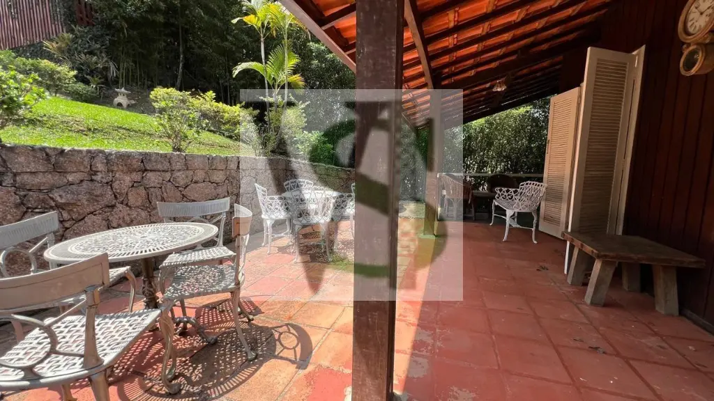 4. Sala: Toda avarandada, com lareira e sala de jantar.
