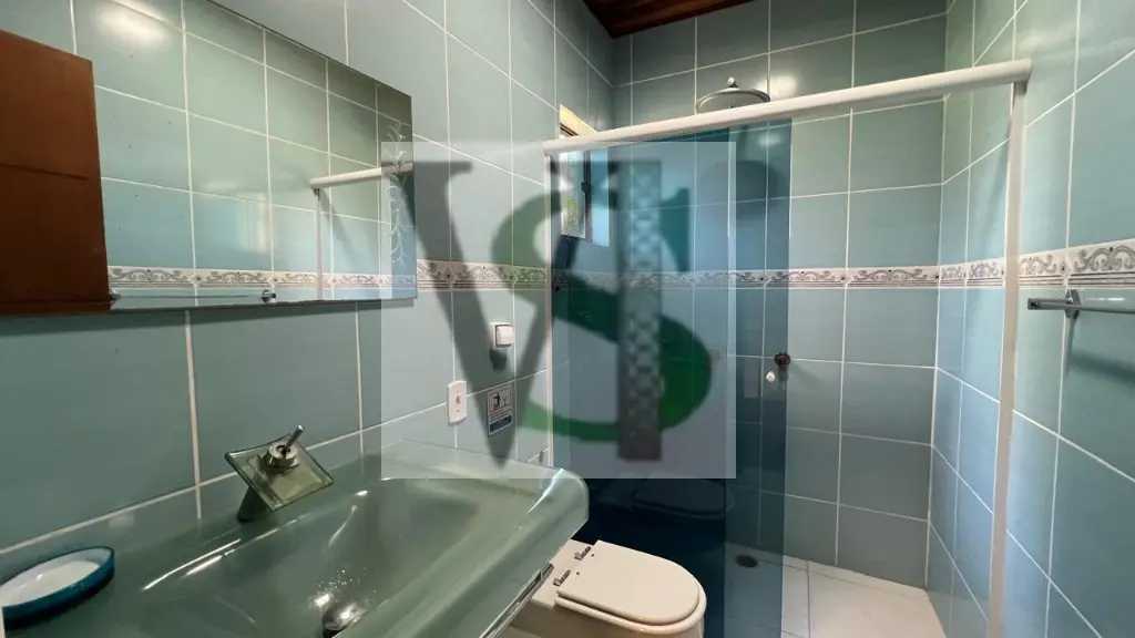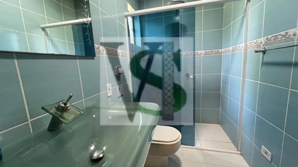 3. Banheiro: Com box blindex e pia com gabinete.
