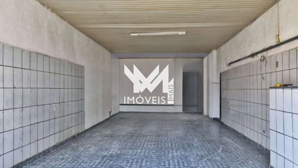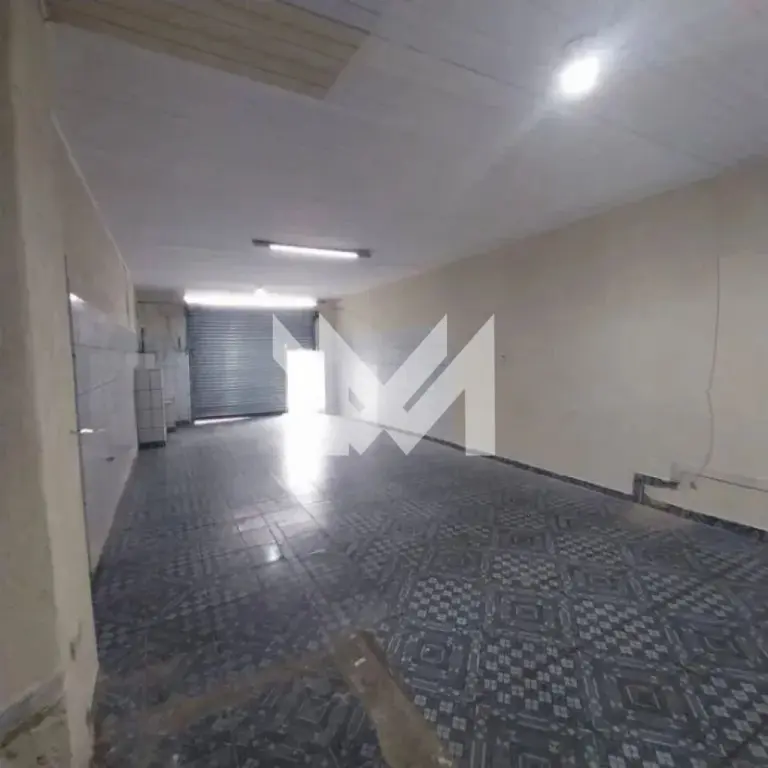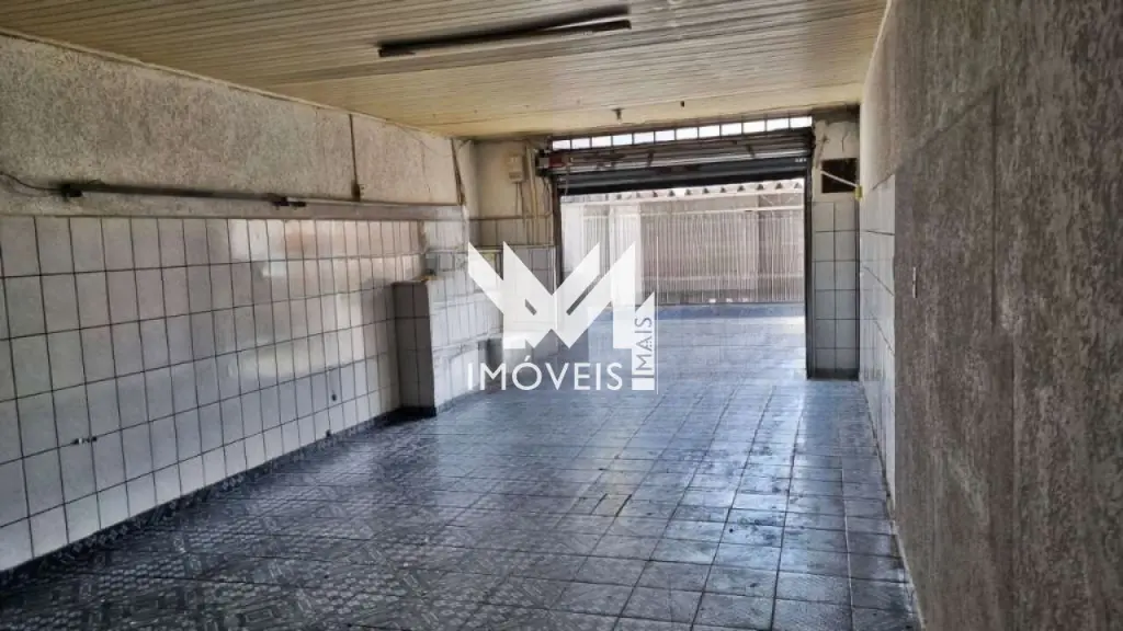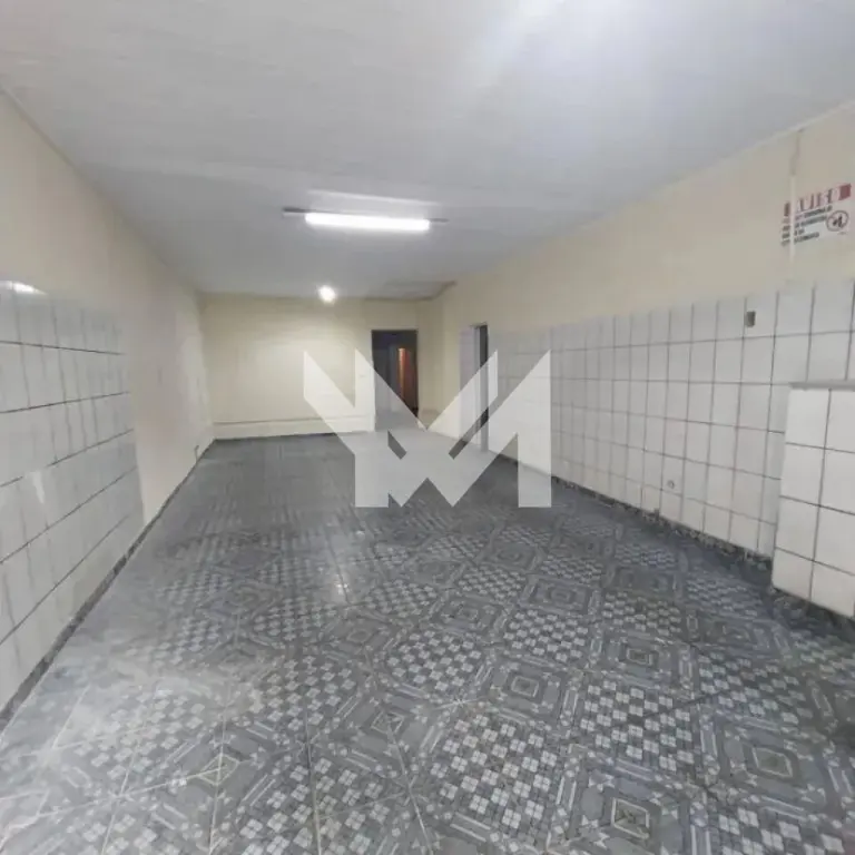 Salão comercial 80m², com cozinha ampla, banheiro e pé direito de 3,30 metros.