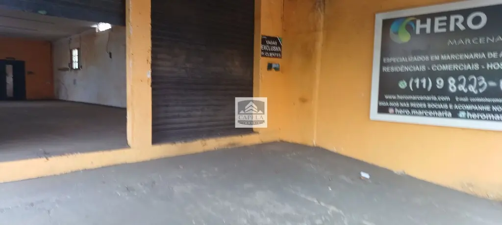 O salão além de ter o vão livre tem também 2 vagas de garagem na frente, no fundo uma mine cozinha, 1 banheiro e uma pequena sala para fazer de escritório..