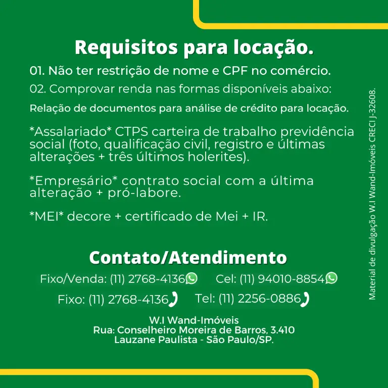 1 - Renda mínima para alugar este imóvel de até 03x valor da locação.