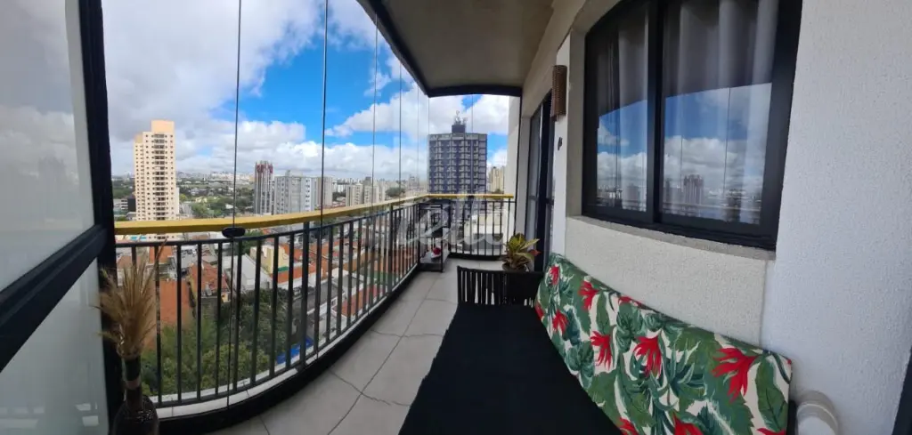 Sacada com fechamento em vidros deslizantes. Móveis na sacada. Ambientes modernos, funcionais e muito bem decorados.