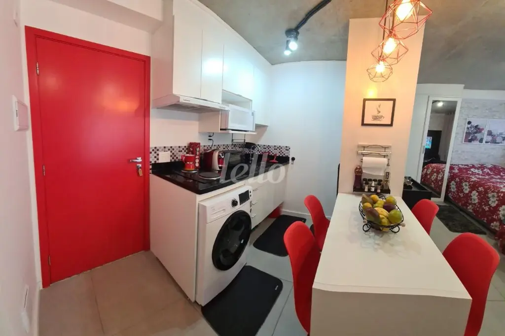 More em um studio moderno, elegante e completo, ideal para quem busca conforto, praticidade e excelente localização. Studio com 36m² totalmente mobiliado e planejado, móveis e eletrodomésticos de primeira qualidade. TV, geladeira, cooktop, micro-ondas, forninho elétrico, depurador de ar, lava-roupas e secador, ar-condicionado quente/frio, fechadura eletrônica com senha.
