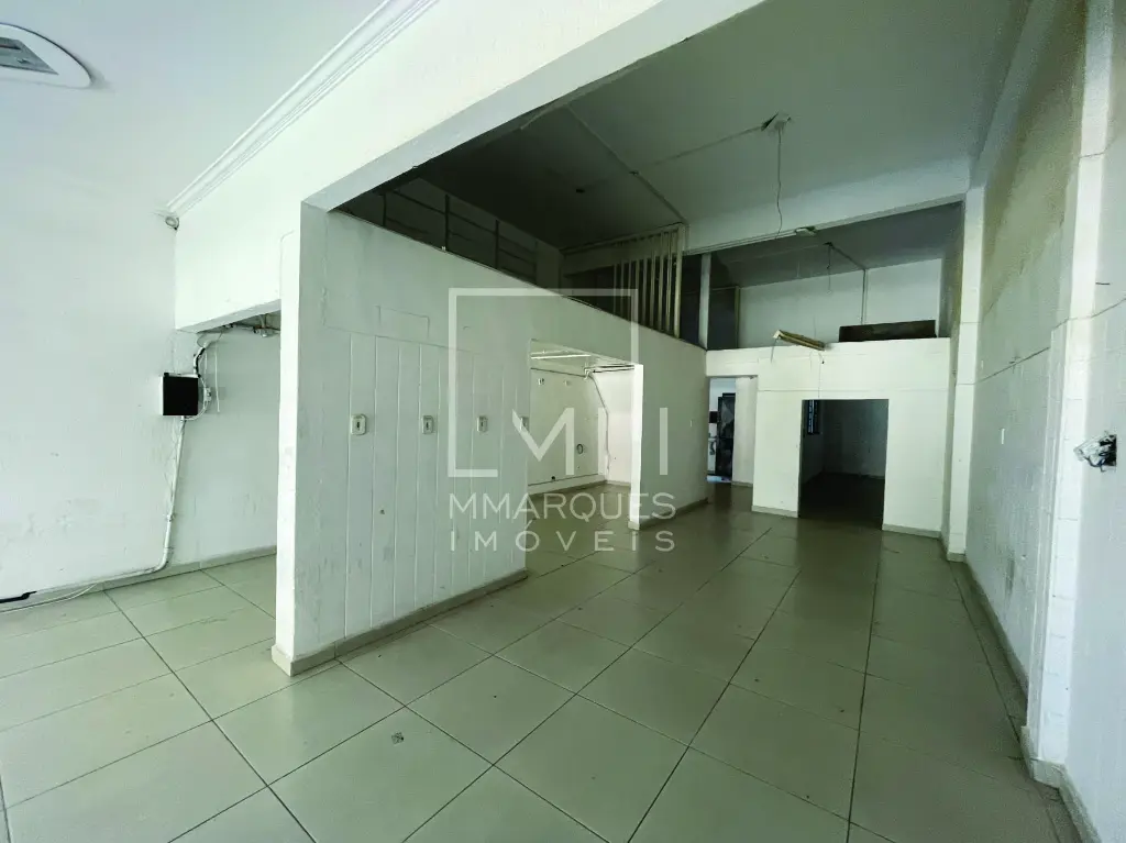 Piso térreo com amplo salão com pé direito duplo, proporcionando um ambiente arejado e iluminado. Conta ainda com um mezanino ideal para depósito, copa, área de serviço e 2 banheiros.