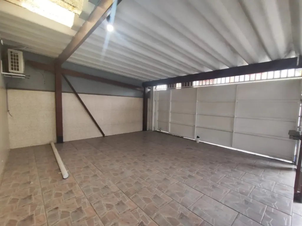 Na parte frontal do imóvel, há garagem para dois ou até três veículos, com portão automático reforçado, oferecendo segurança e praticidade. A frente da casa possui cerca de 5,5 metros, garantindo uma entrada ampla e confortável.