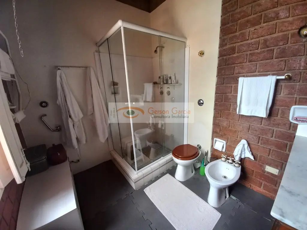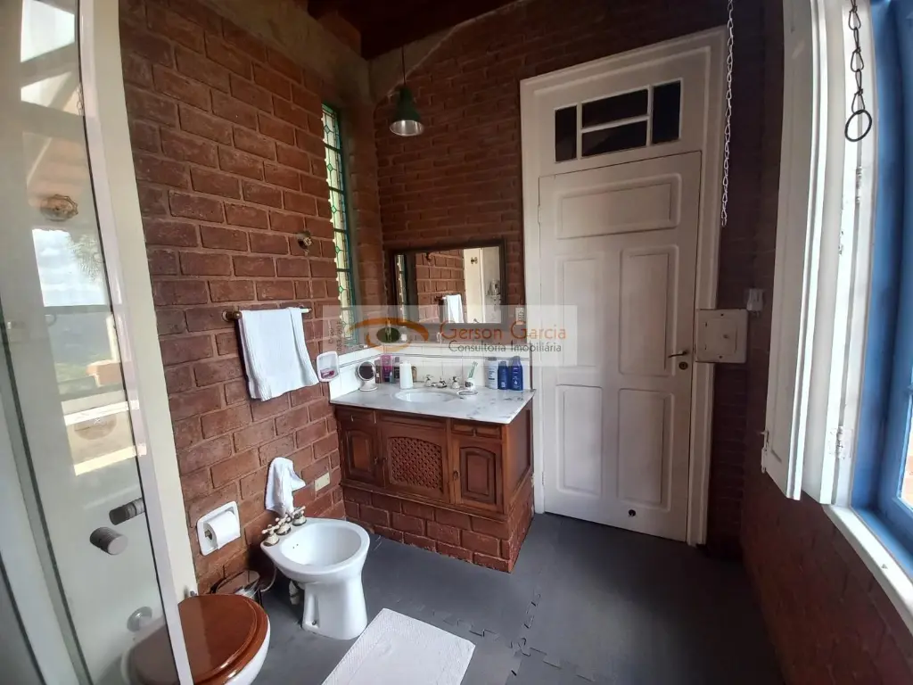 Casa toda construída em tijolos aparentes, em perfeito estado de conservação, pisos em cimento queimado nas partes frias; assoalho nas partes íntimas ( salas e piso superior ); vigas em concreto aparente. Vitraux charmosíssimos e exclusivos. Pôr-do-sol inigualável, de forma perene, um presente divino ! Vista ao longe, proporcionando ao fundo a Serra do Japi.