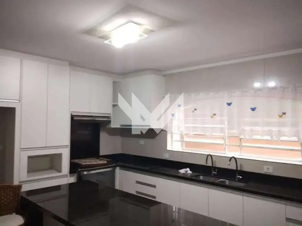 Sobrado de 306m² com 3 quartos, sendo 1 suíte com banheira, sala, cozinha com armários planejados, terraço gourmet, área de serviço, depósito e 5 vagas para carro.