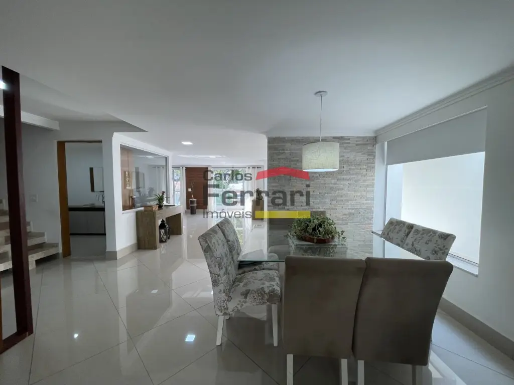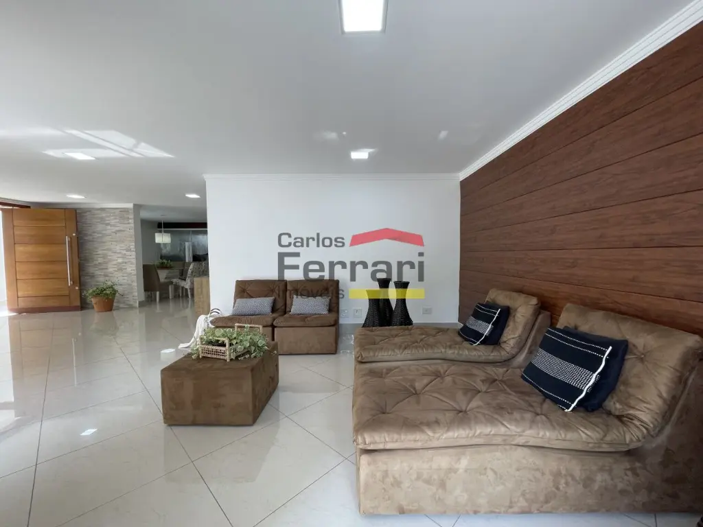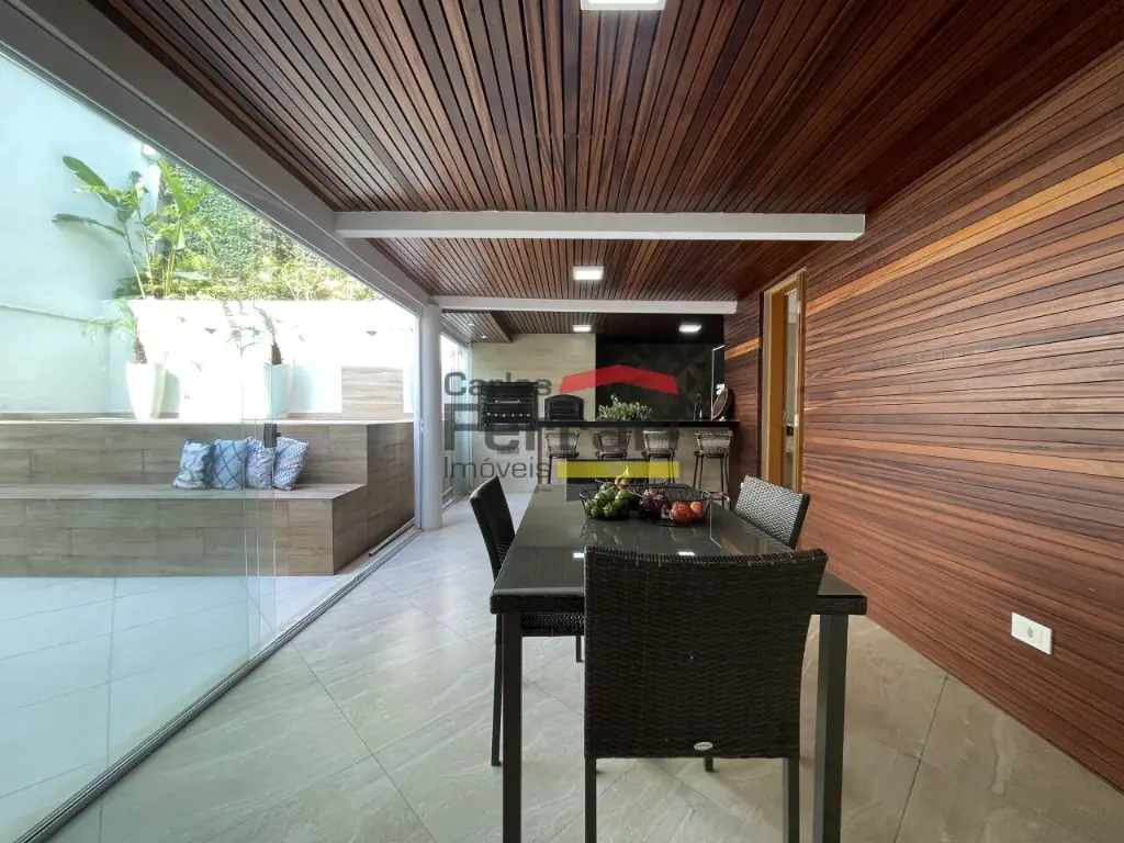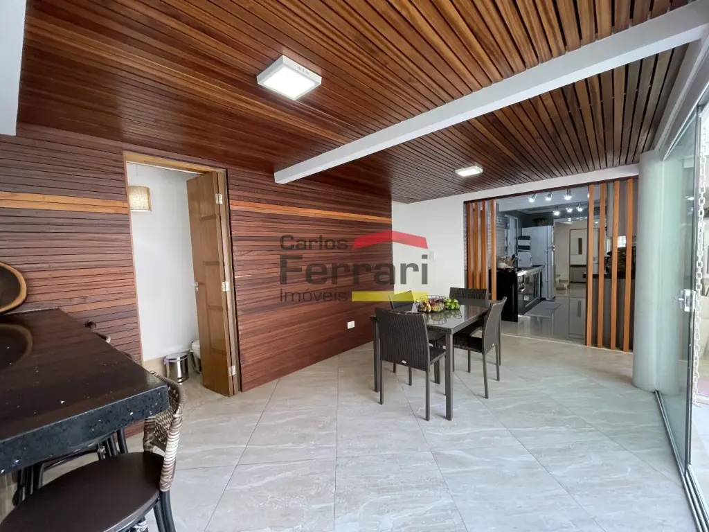 Sobrado de alto padrão em bairro tranquilo e com muito verde. Sala para três ambientes, cozinha planejada com bancadas em pedra, cinco dormitórios sendo quatro suítes, três delas com closet, mais suíte adicional ao fundo. Solarium com vista incrível, quintal com churrasqueira forno de pizza integrados à sala e cozinha. Amplas portas e janelões de vidro que dão luz a todos os ambientes da casa. Projeto para piscina, três vagas de garagem, preparação para elevador, entrada lateral, lavabo, sacadas, projeto de iluminação. Venha conhecer seu futuro lar. Agende uma visita.