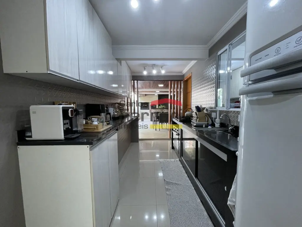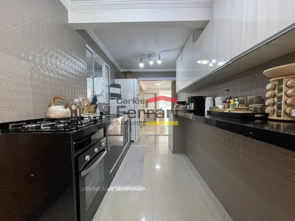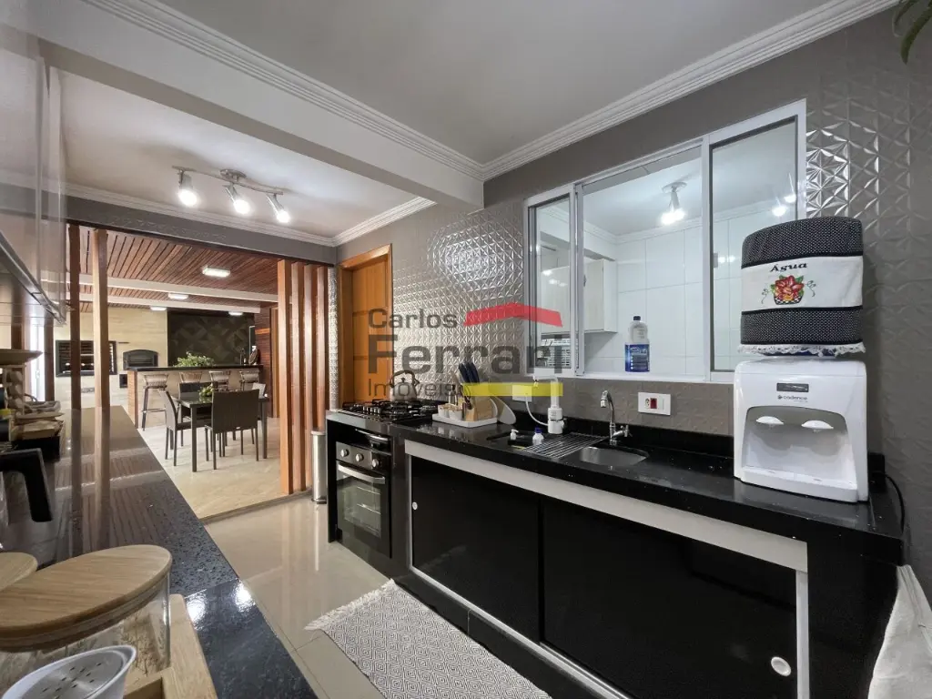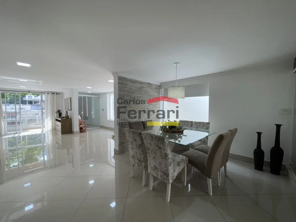 Sobrado de alto padrão em bairro tranquilo e com muito verde. Sala para três ambientes, cozinha planejada com bancadas em pedra, cinco dormitórios sendo quatro suítes, três delas com closet, mais suíte adicional ao fundo. Solarium com vista incrível, quintal com churrasqueira forno de pizza integrados à sala e cozinha. Amplas portas e janelões de vidro que dão luz a todos os ambientes da casa. Projeto para piscina, três vagas de garagem, preparação para elevador, entrada lateral, lavabo, sacadas, projeto de iluminação. Venha conhecer seu futuro lar. Agende uma visita.