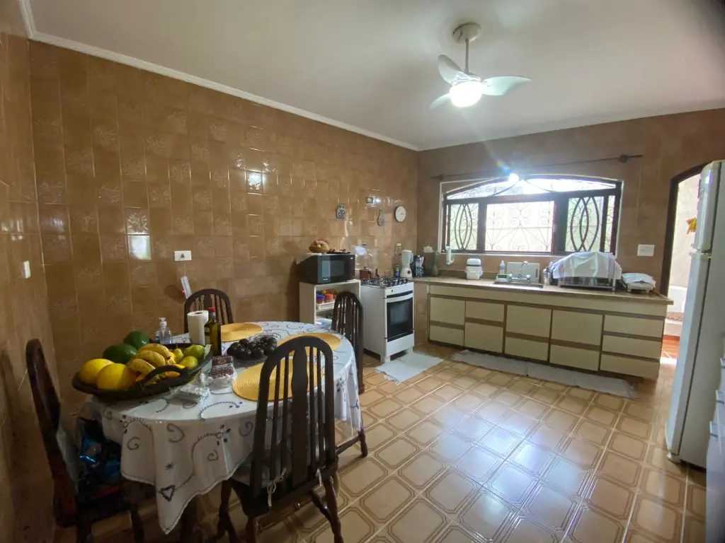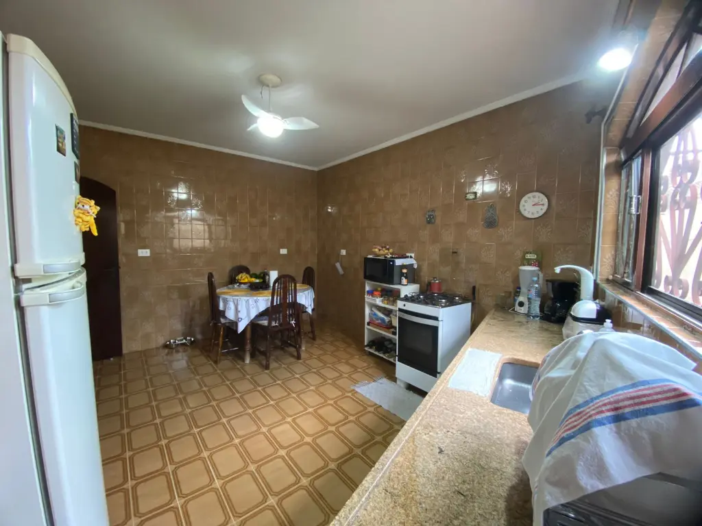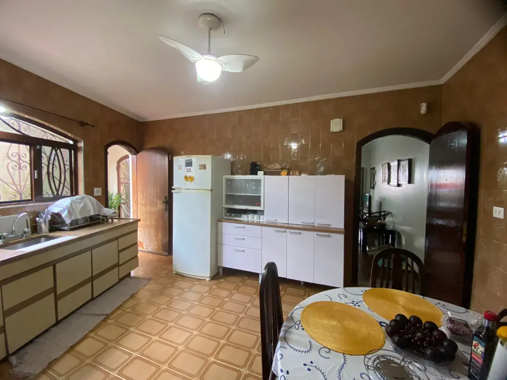 Ampla cozinha com acesso ao quintal e lavanderia.