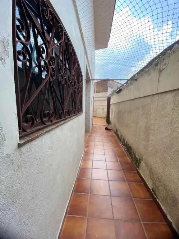 Entrada social e entrada de serviço com corredor lateral e acesso ao quintal/ lavanderia.