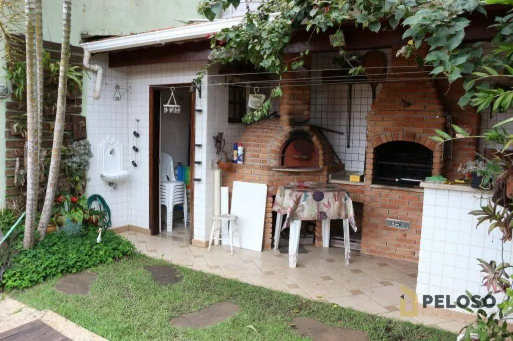 A área de lazer equipada com forno de pizza, fogão a lenha, churrasqueira e jardim.