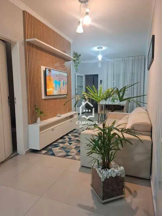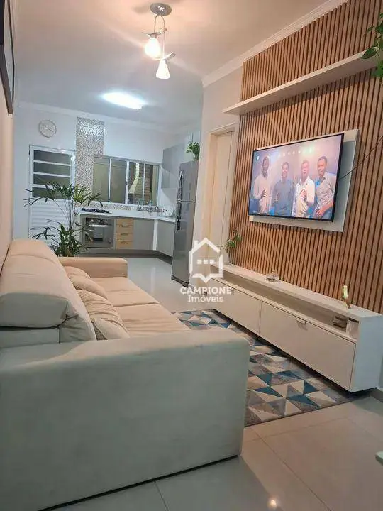 Sala de estar aconchegante com painel ripado planejado;