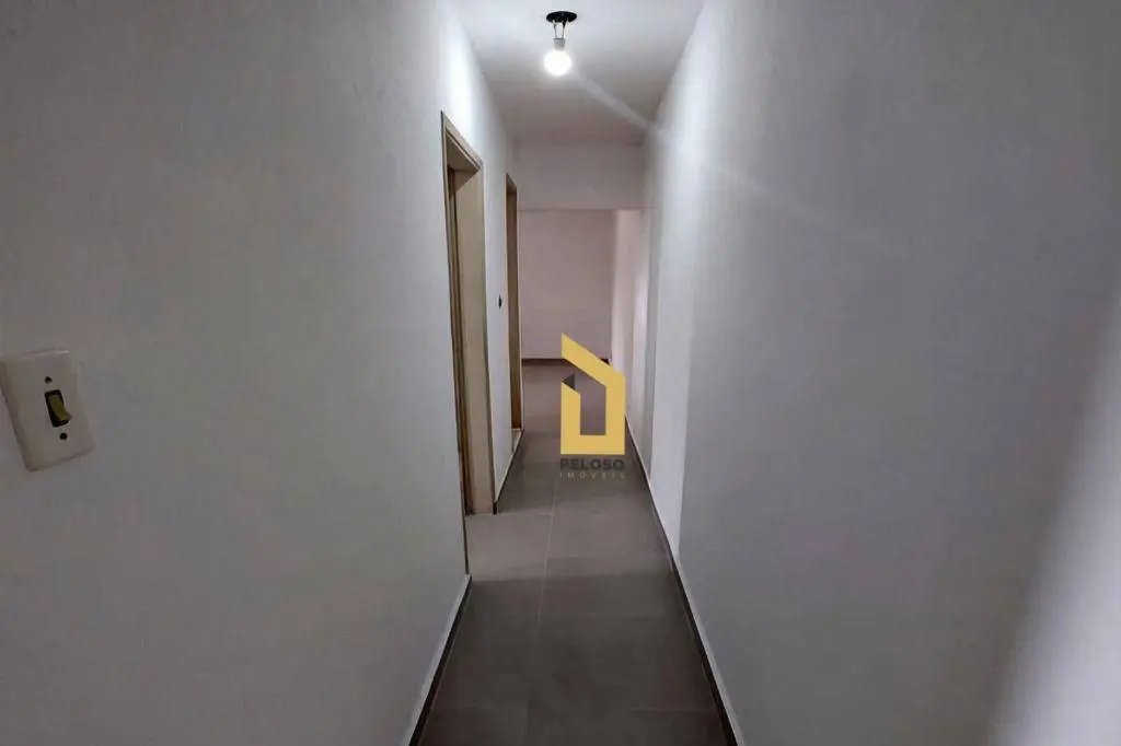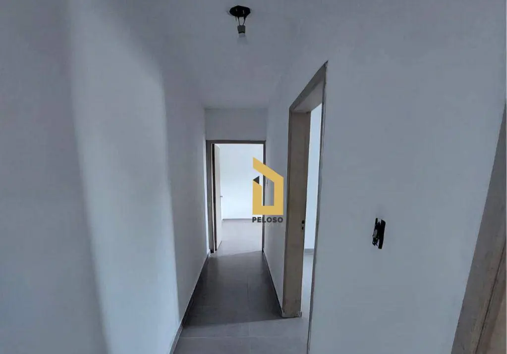 2 dormitórios, sala para 2 ambientes, 1 banheiro, cozinha e área de serviço, corredor lateral.
