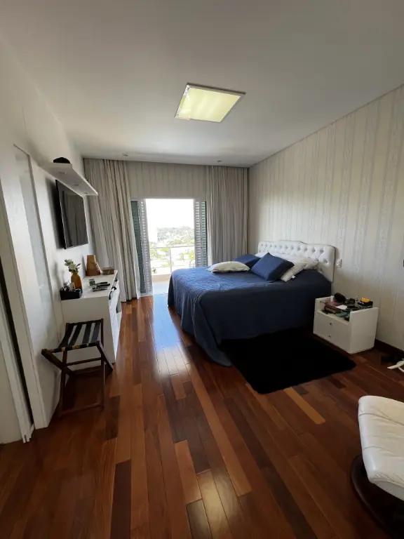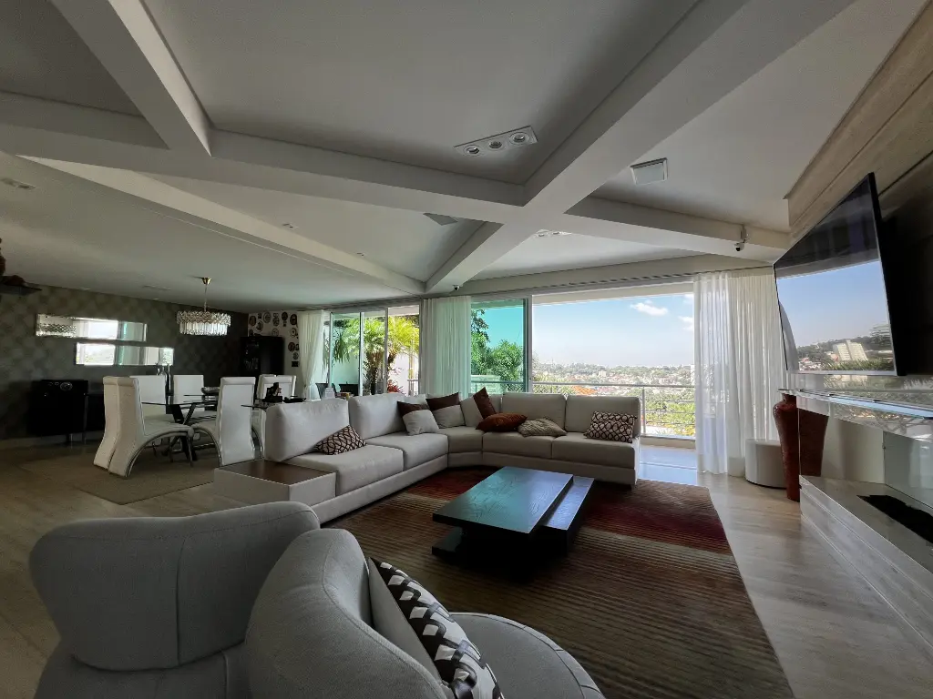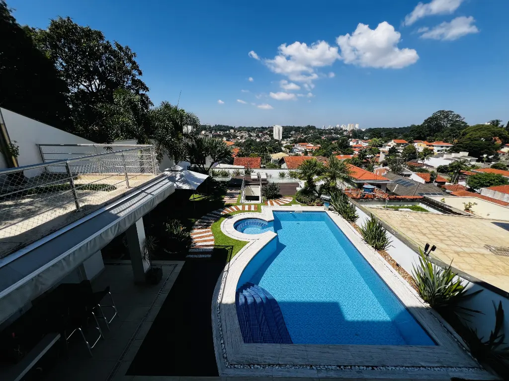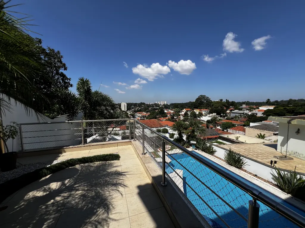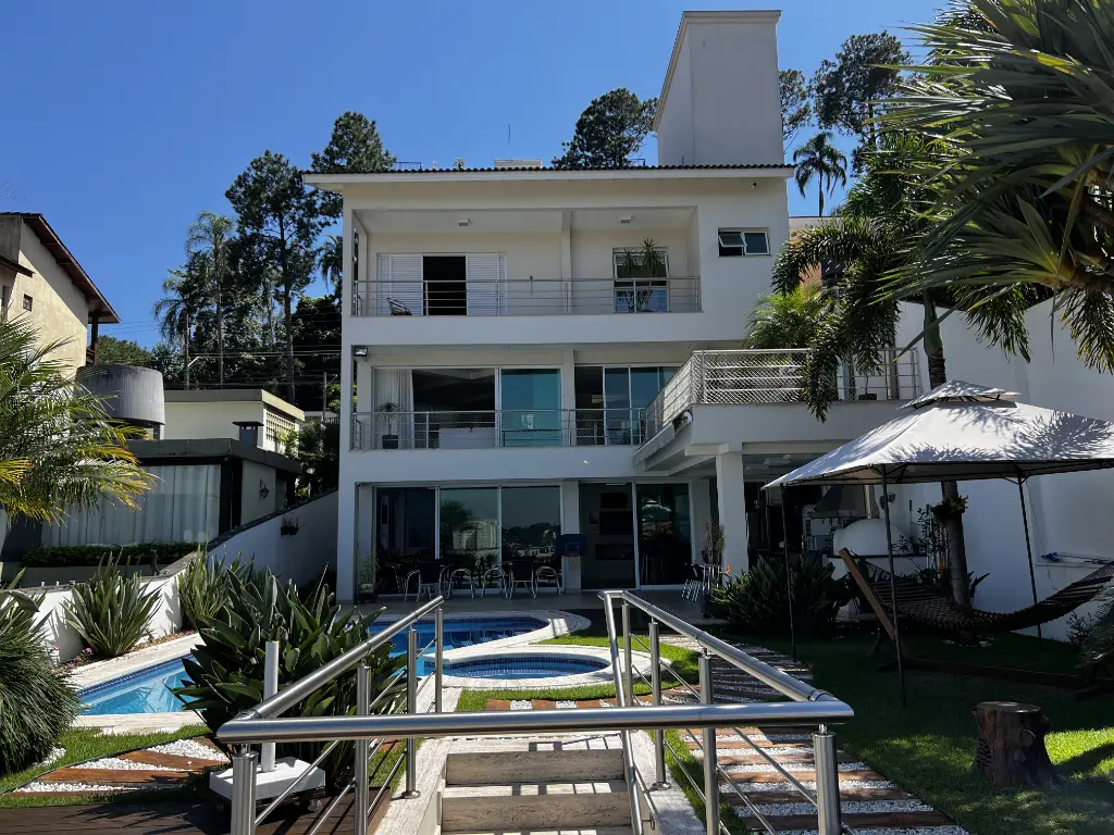 Mansão de altíssimo padrão na zona norte, com vista panorâmica livre de 180º. Imóvel possui 4 suítes amplas, todas com armários, sendo a principal com varanda, closet, banheira com hidromassagem e cuba dupla. Possui um 5° dormitório reversível conforme sua necessidade e preferência. Living para 4 ambientes: sala de jantar, sala de estar, sala de lareira, escritório e lavabo. Cozinha conceito aberto planejada com ilha, coocktop, geladeira, freezer, micro ondas, coifa em aço inox . Acabamentos :pisos nas partes frias em mármore travertino e nas áreas quentes piso de madeira parquet. Possui área de lazer: piscina com cascata, área gourmet com churrasqueira, forno de pizza, salão de jogos, home bar e sauna. Quintal gramado com caminho pisantes para jardim Temos ainda com: atelier, quarto de hospede, brinquedoteca e dependência de emprega. Fachada com 12 metros de frente, entrada lateral, ar condicionado em todos os ambientes, sistema completo de monitoramento e placa de energia solar. Porteira fechada