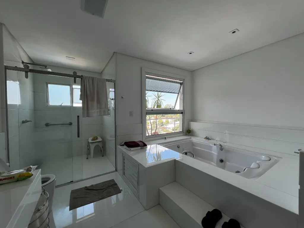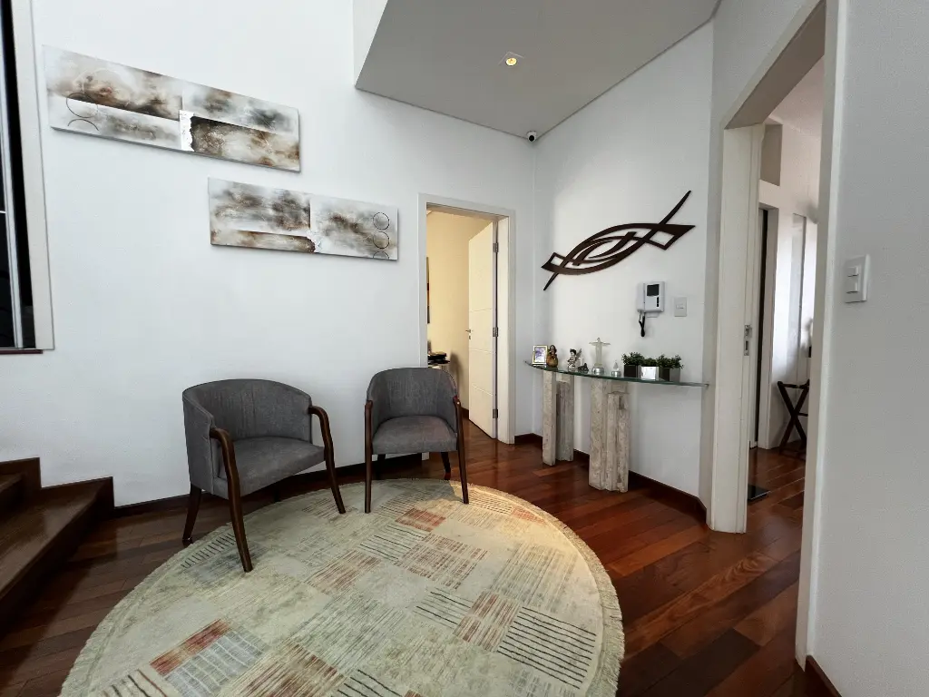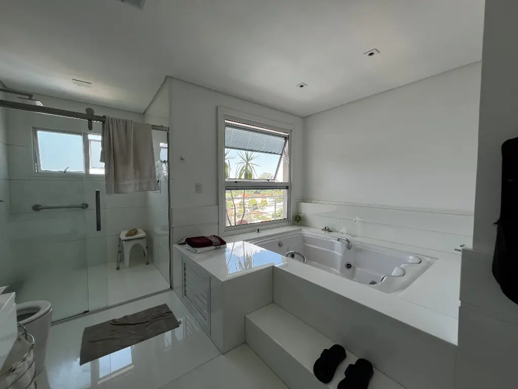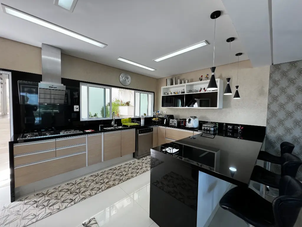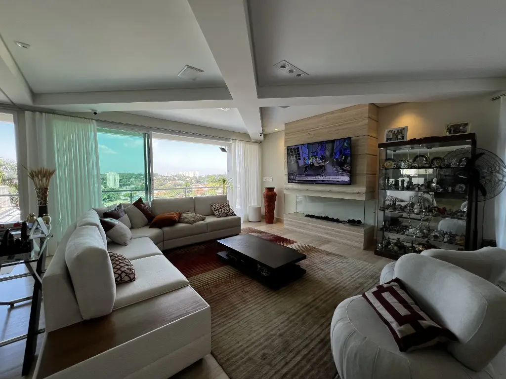 Mansão de altíssimo padrão na zona norte, com vista panorâmica livre de 180º. Imóvel possui 4 suítes amplas, todas com armários, sendo a principal com varanda, closet, banheira com hidromassagem e cuba dupla. Possui um 5° dormitório reversível conforme sua necessidade e preferência. Living para 4 ambientes: sala de jantar, sala de estar, sala de lareira, escritório e lavabo. Cozinha conceito aberto planejada com ilha, coocktop, geladeira, freezer, micro ondas, coifa em aço inox . Acabamentos :pisos nas partes frias em mármore travertino e nas áreas quentes piso de madeira parquet. Possui área de lazer: piscina com cascata, área gourmet com churrasqueira, forno de pizza, salão de jogos, home bar e sauna. Quintal gramado com caminho pisantes para jardim Temos ainda com: atelier, quarto de hospede, brinquedoteca e dependência de emprega. Fachada com 12 metros de frente, entrada lateral, ar condicionado em todos os ambientes, sistema completo de monitoramento e placa de energia solar. Porteira fechada