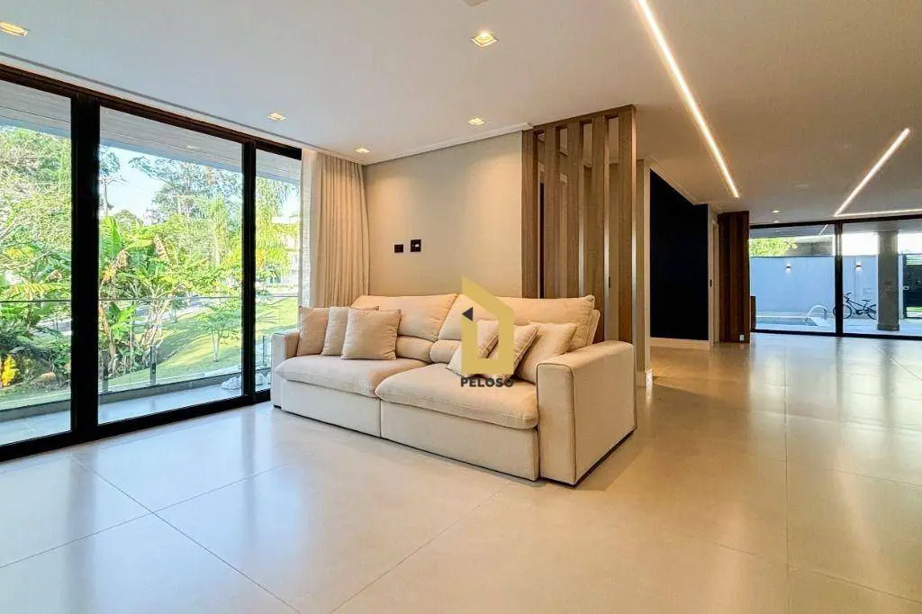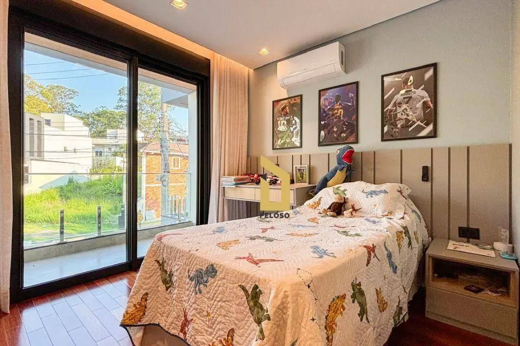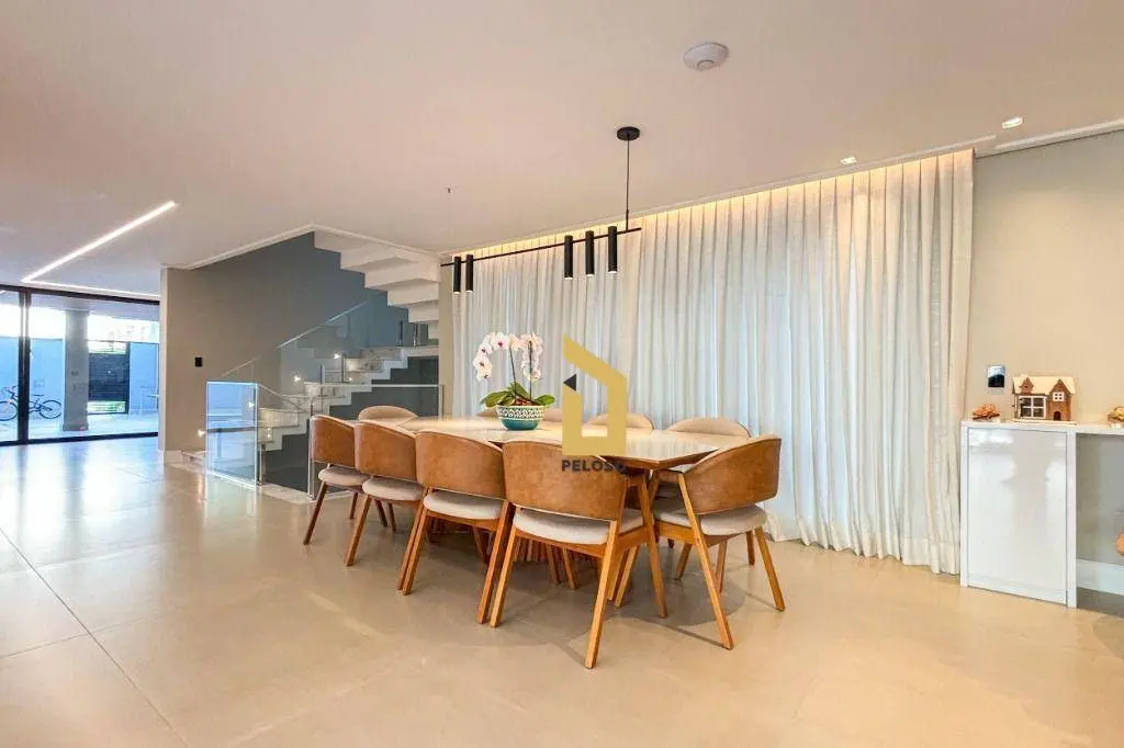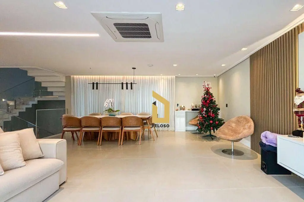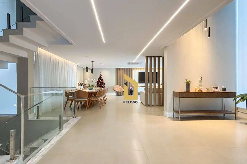 São 5 suites todas com closet, ampla sala de jantar, sala de TV, sacada, cozinha integrada ao espaço gourmet, suite de empregada, direito duplo, espaços confortáveis e arejados, iluminação natural, persianas black out, ar condicionado, todos os ambientes com armários embutido de qualidade e sofisticação, piso porcelanato e madeira maciça, porta principal de 5,20m, fechadura digital e muita elegância.