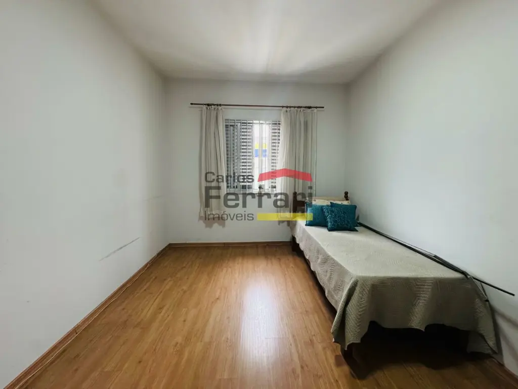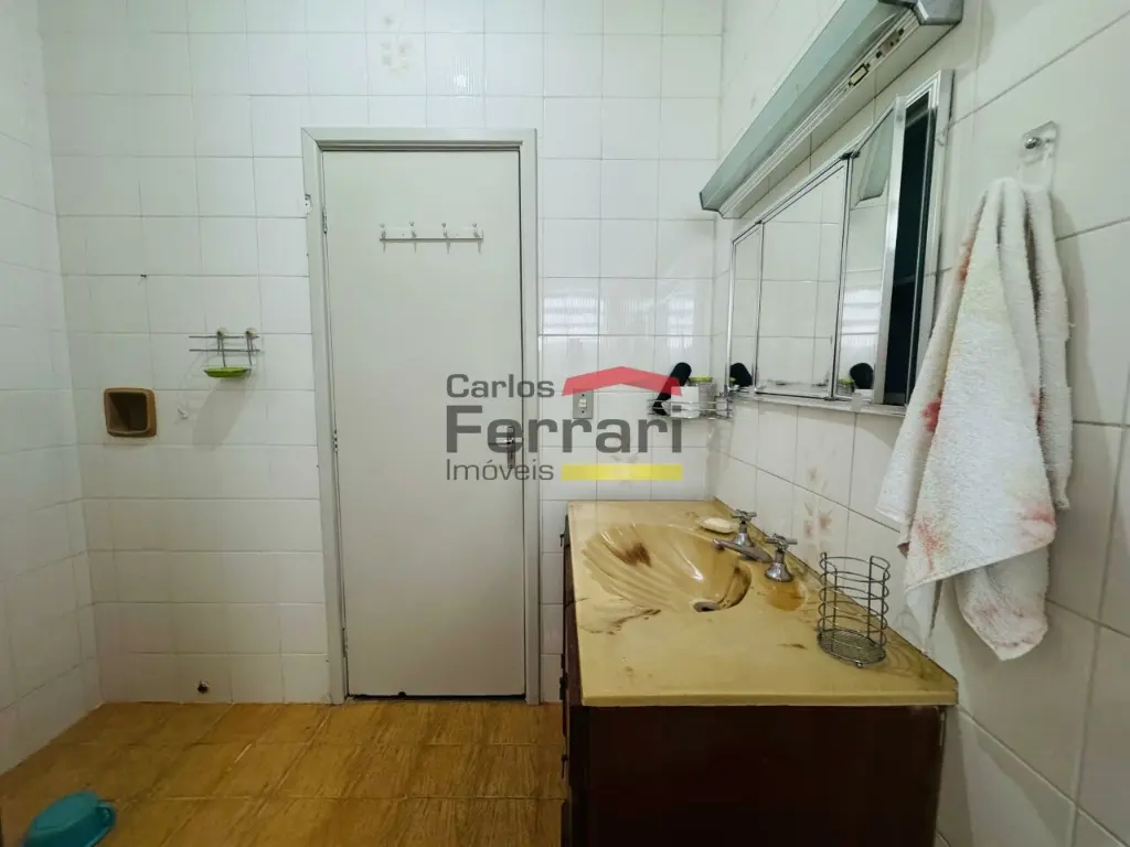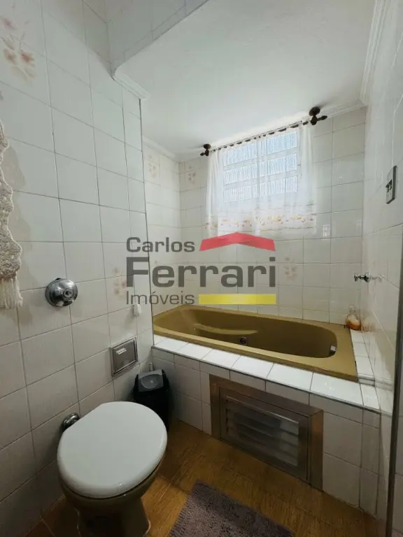 No pavimento superior ficam os 3 dormitórios e um banheiro social com banheira.