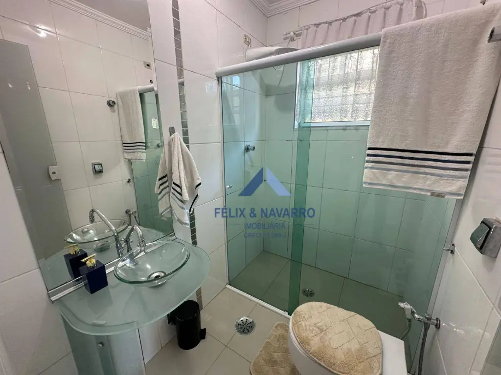 São 02 suítes (com armários e sacada), sala de estar e de jantar, lavabo, 2 banheiros, cozinha (com armários), lavanderia, quintal corredor lateral e 2 a 3 vagas de garagem cobertas.