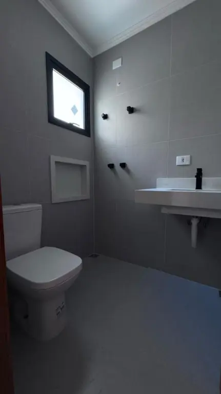 Lindo sobrado novo com 110 m² de área construída, com excelente padrão de acabamento, conceito moderno. Com 3 suítes (Sendo 2 com varanda), sala para 2 ambientes, cozinha, 4 banheiros, 2 vagas de garagem, área de serviço, espaço gourmet com churrasqueira, aquecimento a gás central, piso em porcelanato e laminado.