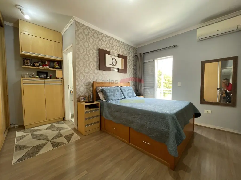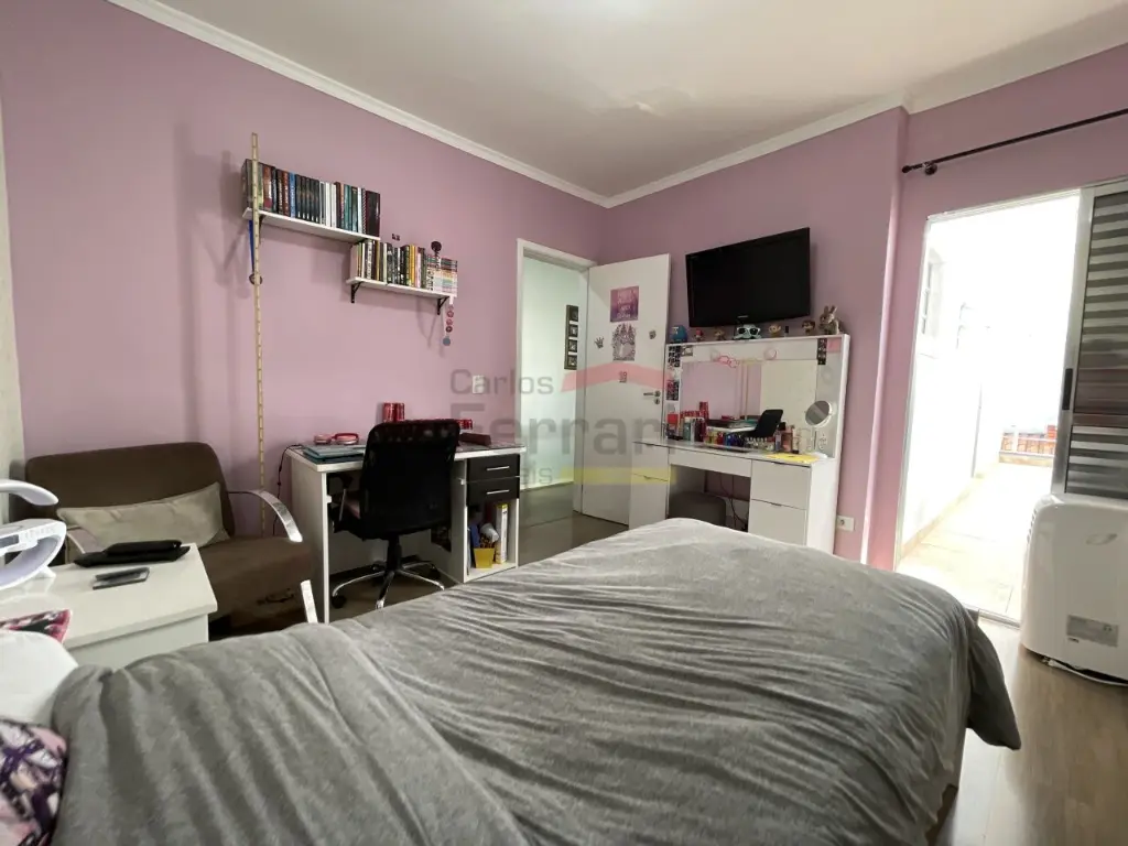 Dormitórios: O sobrado possui três dormitórios, todos equipados com armários embutidos que otimizam o espaço e oferecem grande capacidade de organização. O quarto do casal é especialmente confortável, contando com ar-condicionado para garantir noites de sono tranquilas em qualquer época do ano.