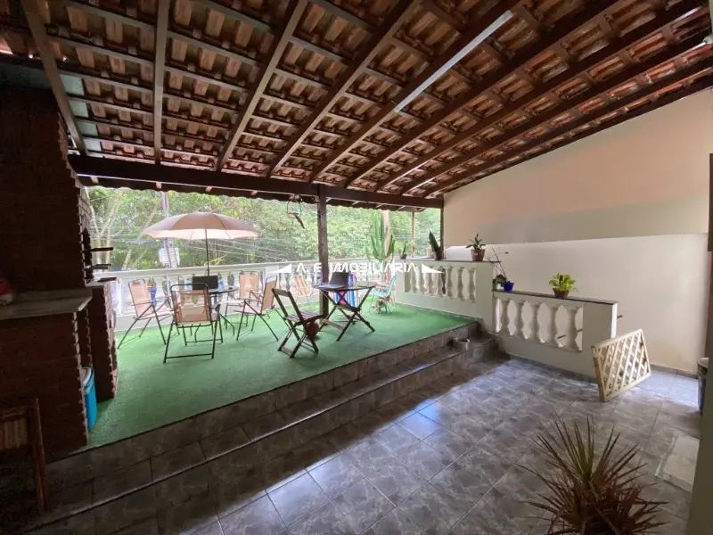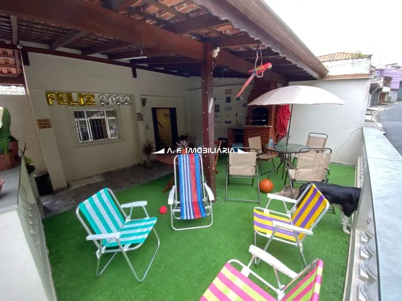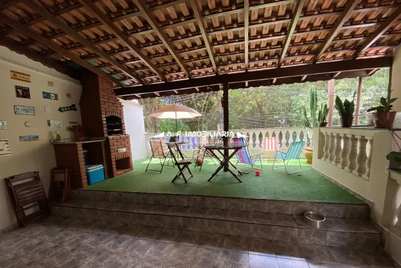 Quintal generoso com grama sintética e espaço gourmet